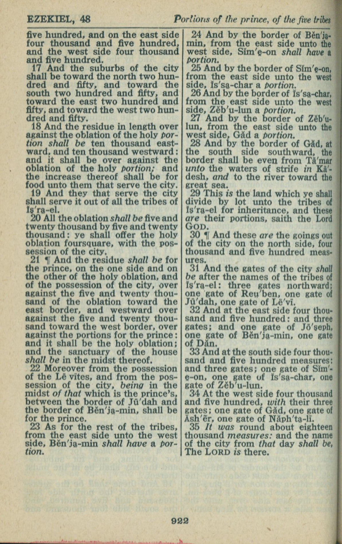 1946年King James Version 以西结书 48 章 17 节到 48 章 35 节