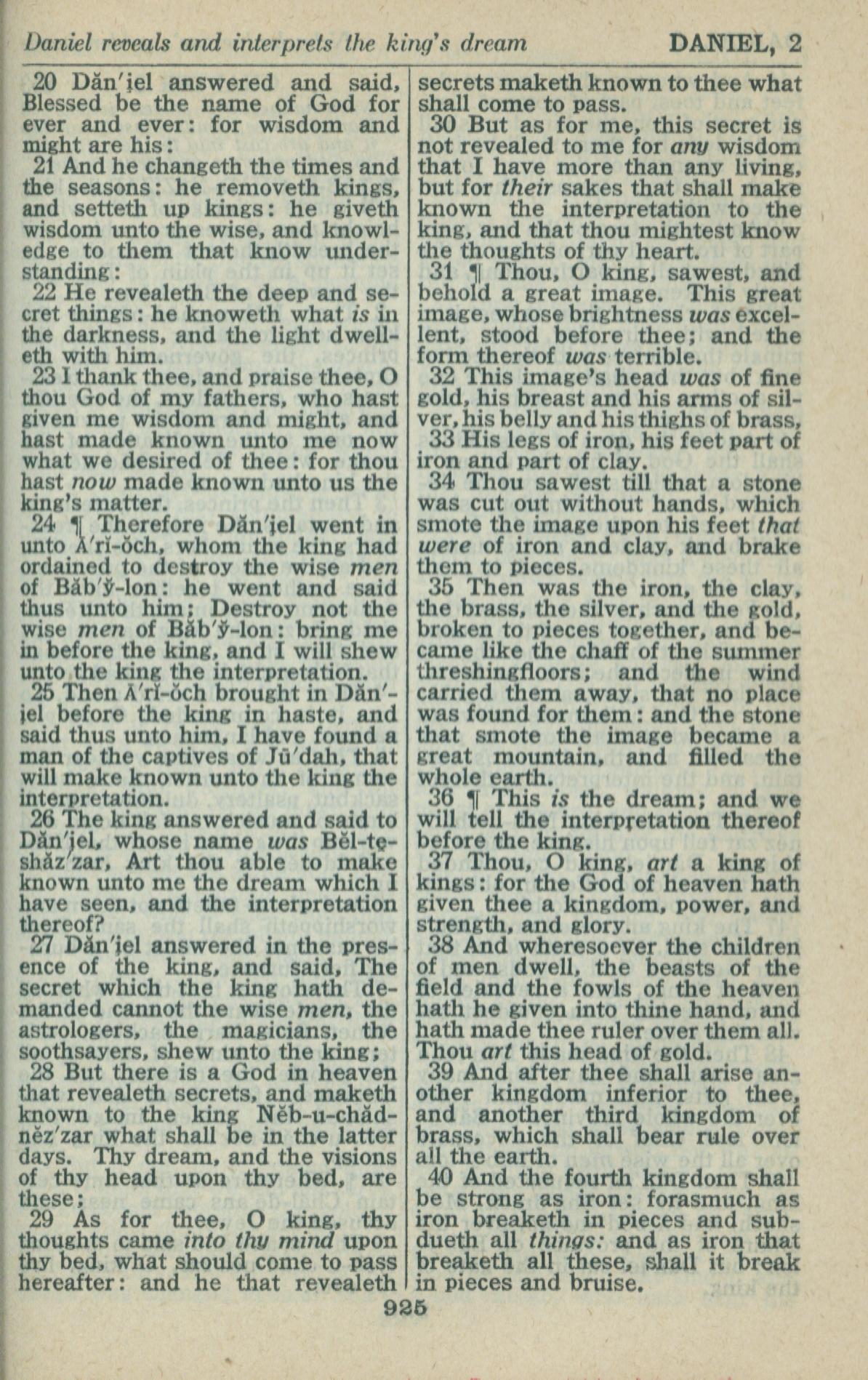 1946年King James Version 但以理书 2 章 20 节到 2 章 40 节
