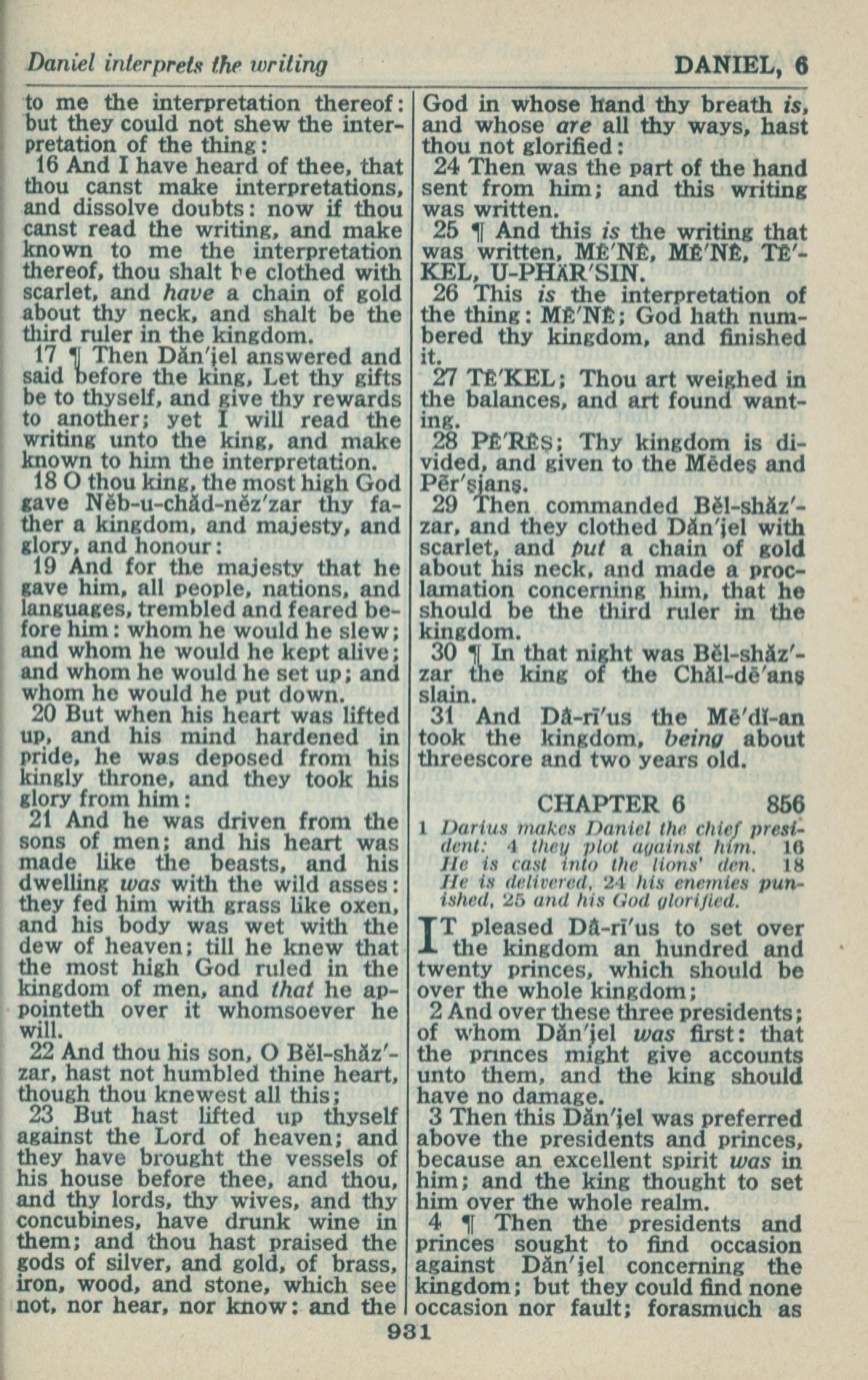 1946年King James Version 但以理书 5 章 16 节到 6 章 4 节