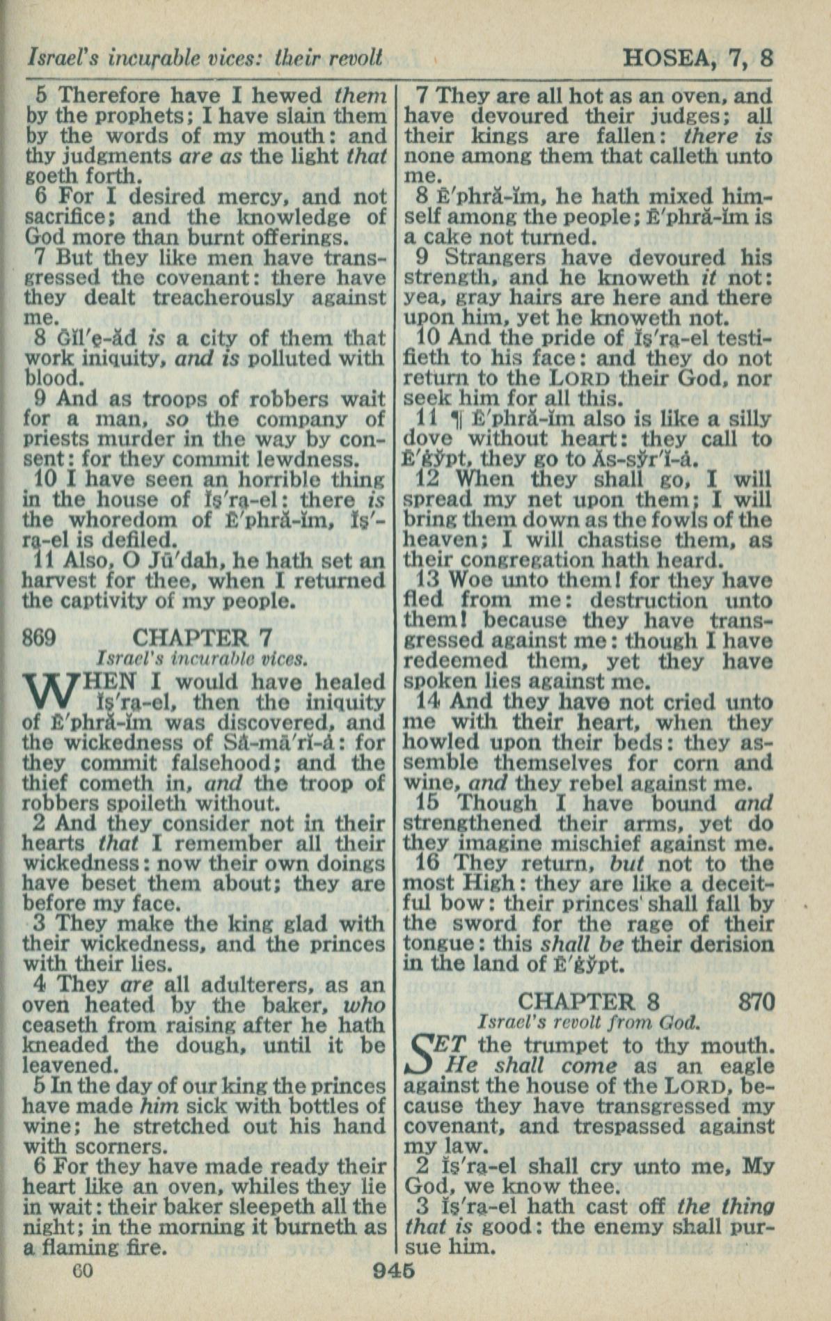 1946年King James Version 何西阿书 6 章 5 节到 8 章 3 节