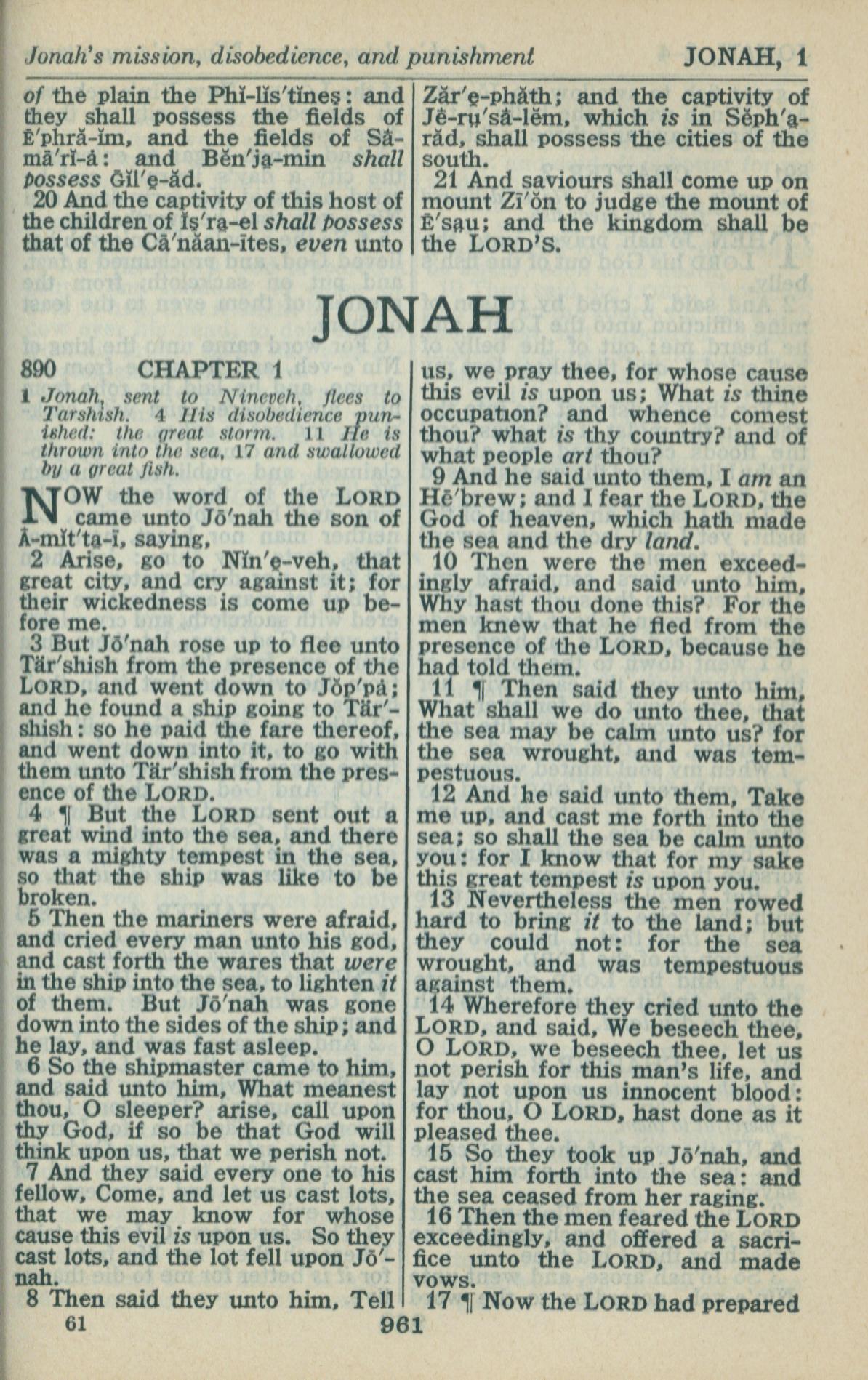 1946年King James Version 约拿书 1 章 1 节到 1 章 17 节
