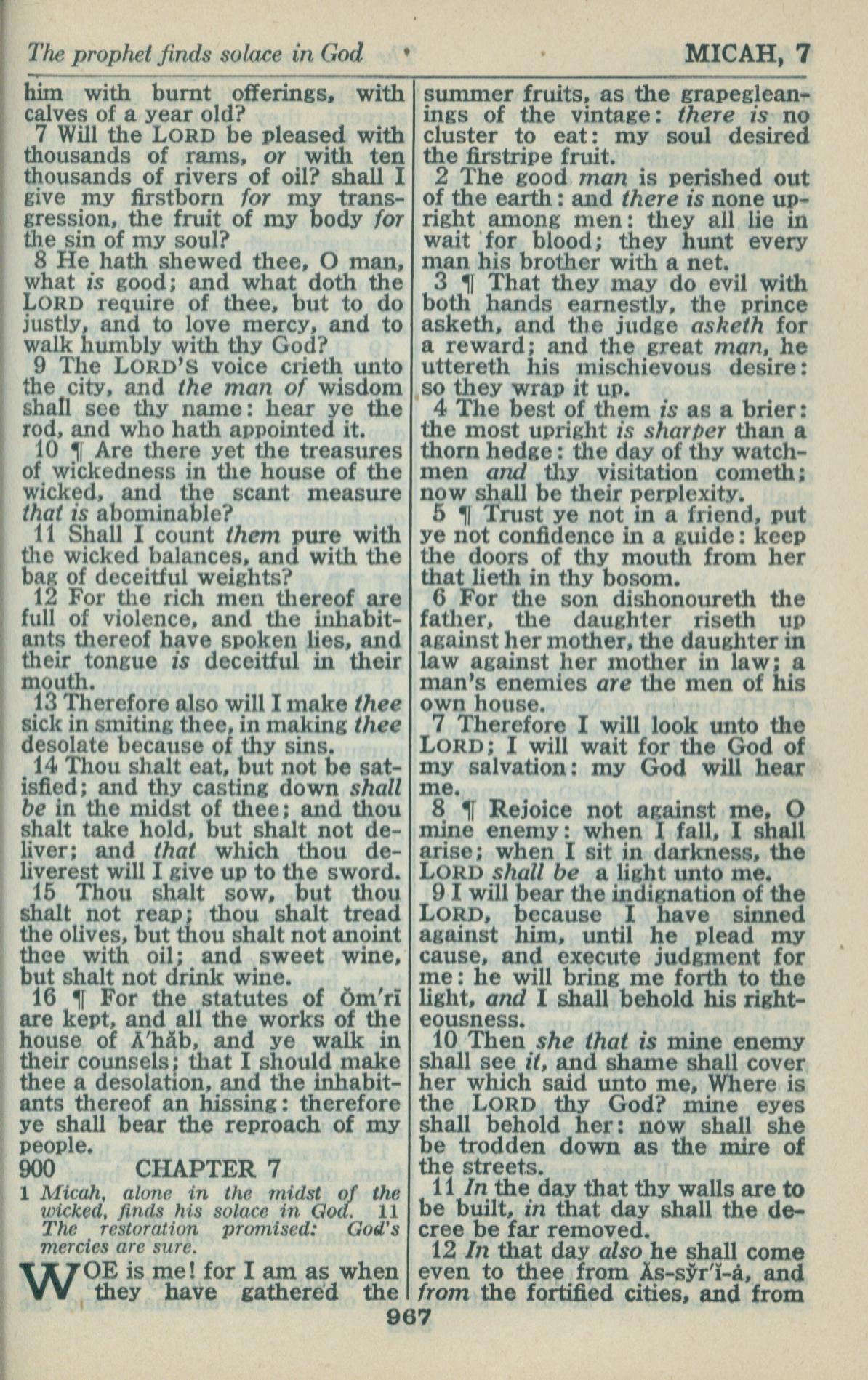 1946年King James Version 弥迦书 6 章 7 节到 7 章 12 节