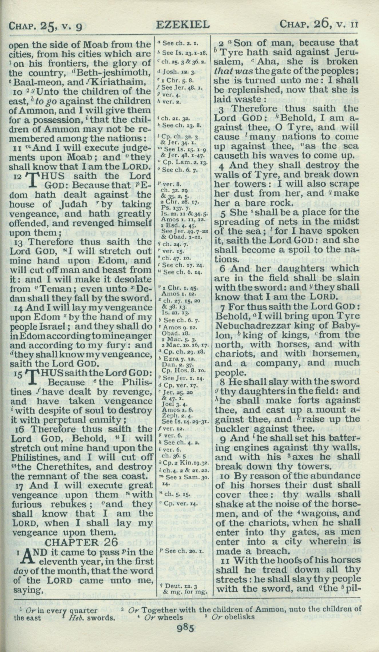 1898年Revised Version 以西结书 25 章 9 节到 26 章 11 节