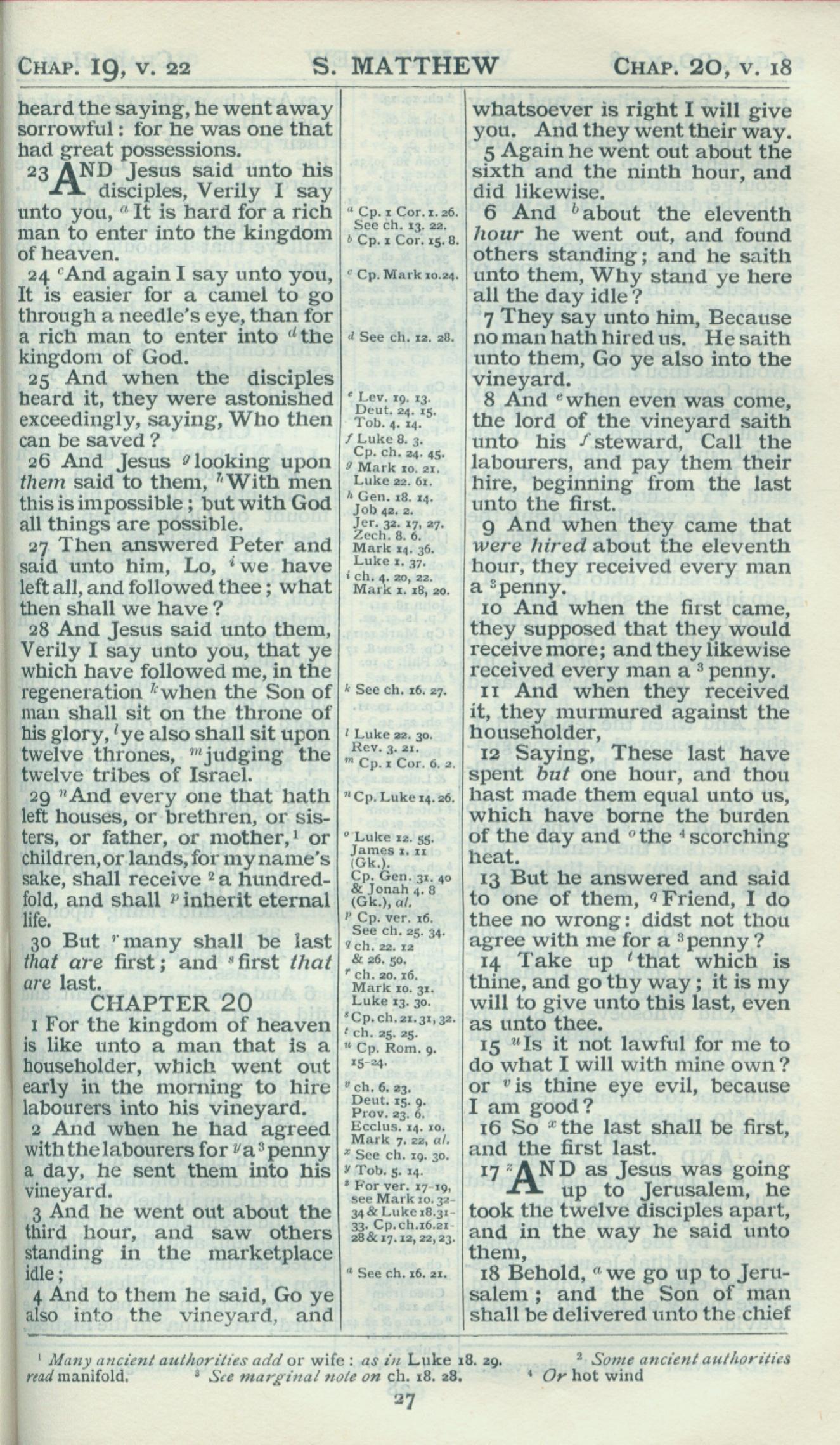 1898年Revised Version 马太福音 19 章 23 节到 20 章 18 节