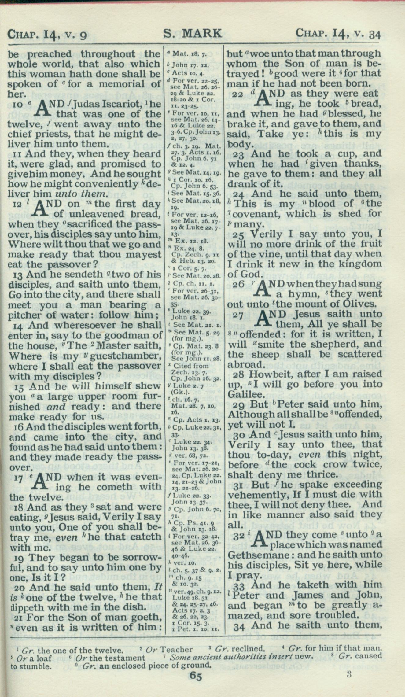 1898年Revised Version 马可福音 14 章 10 节到 14 章 34 节