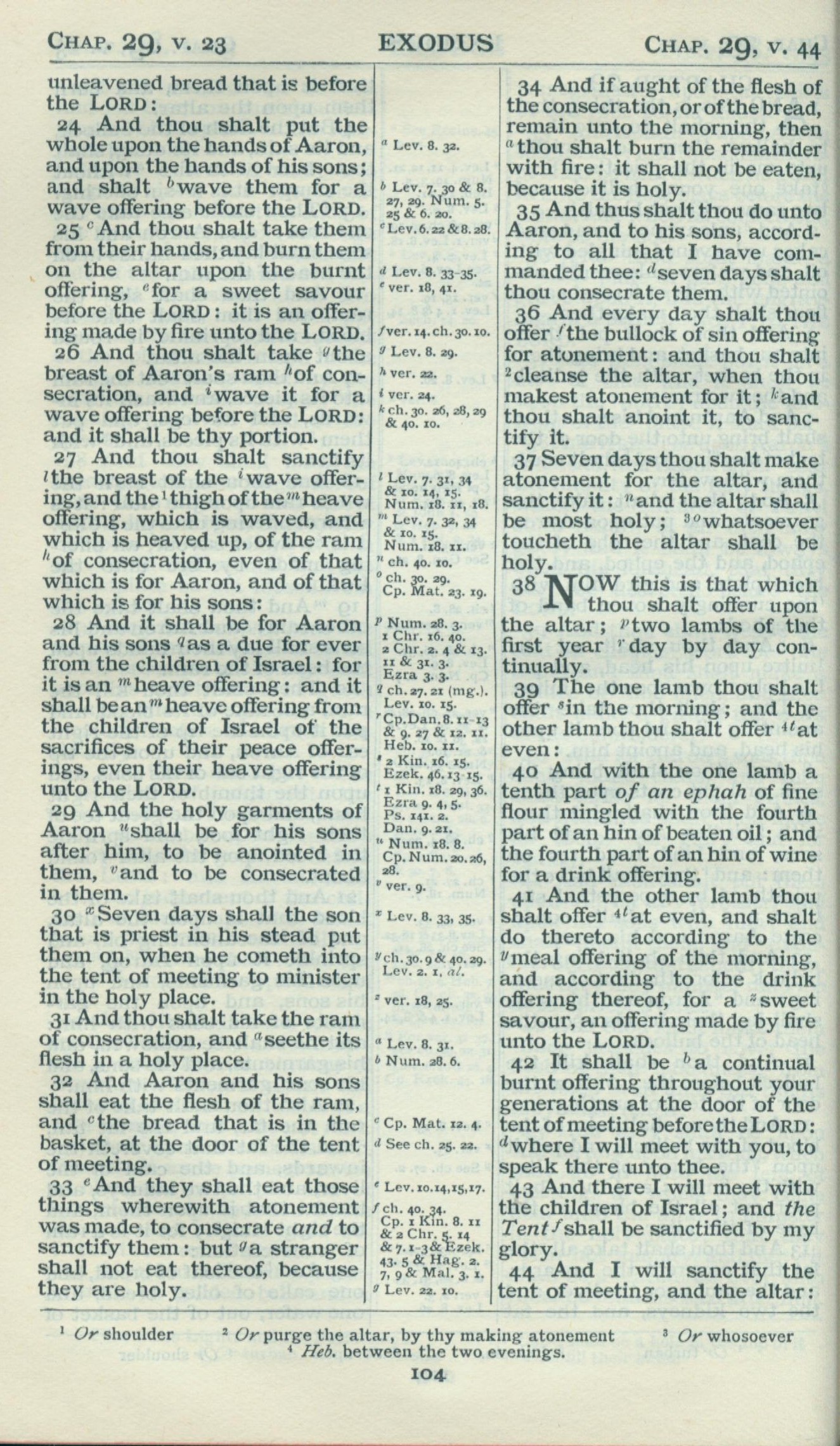 1898年Revised Version 出埃及记 29 章 24 节到 29 章 44 节