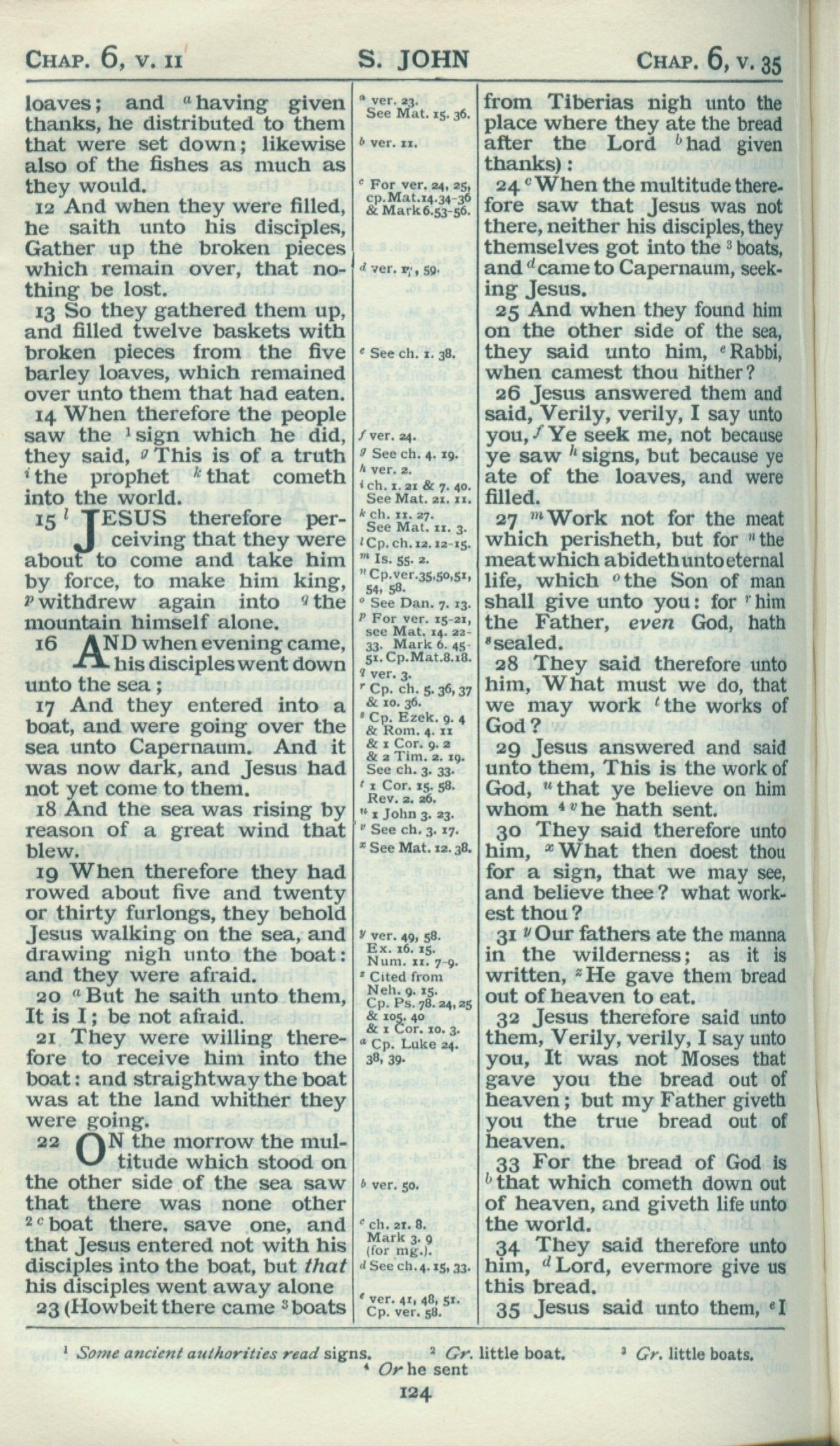 1898年Revised Version 约翰福音 6 章 12 节到 6 章 35 节