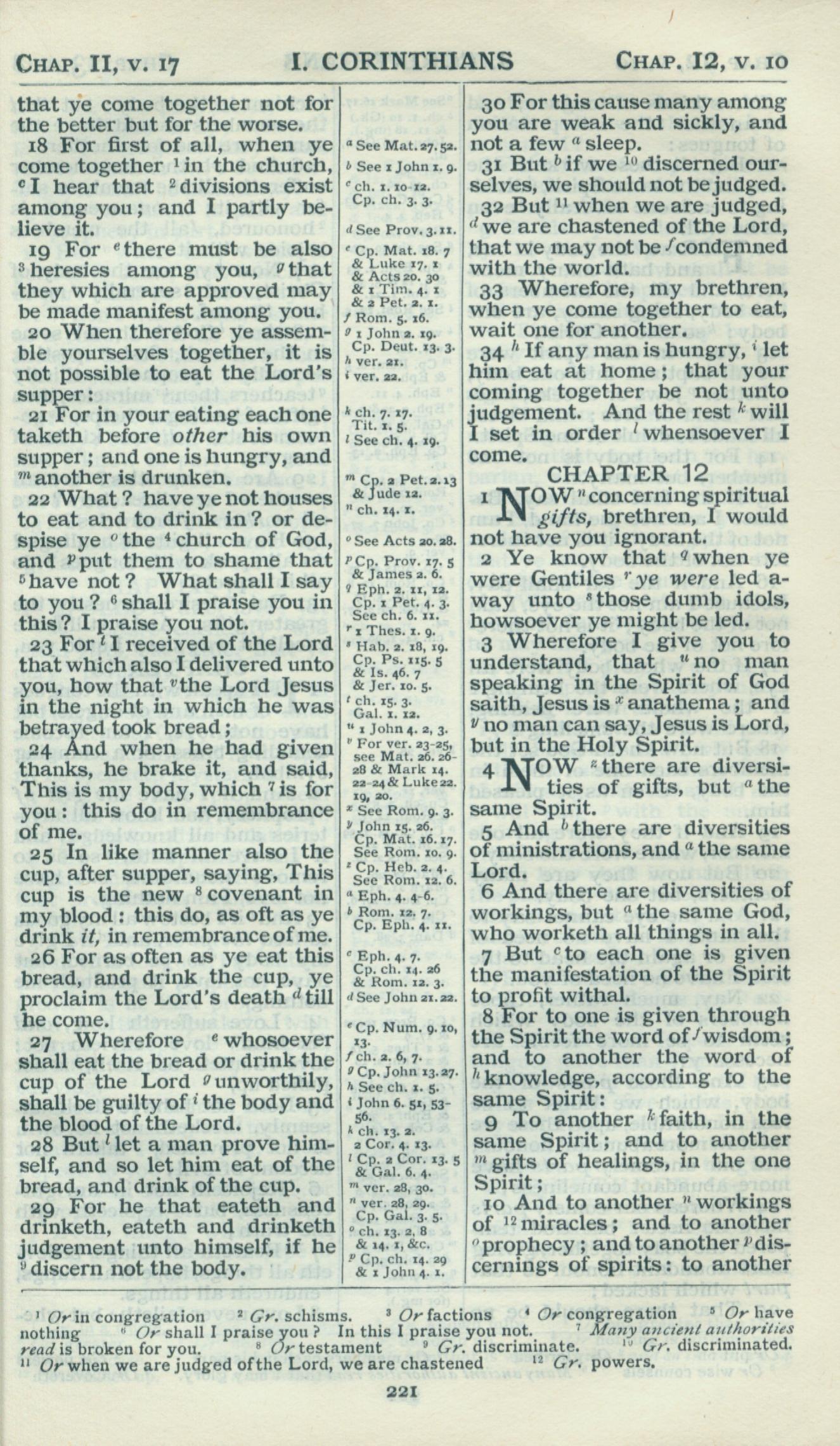 1898年Revised Version 哥林多前书 11 章 18 节到 12 章 10 节