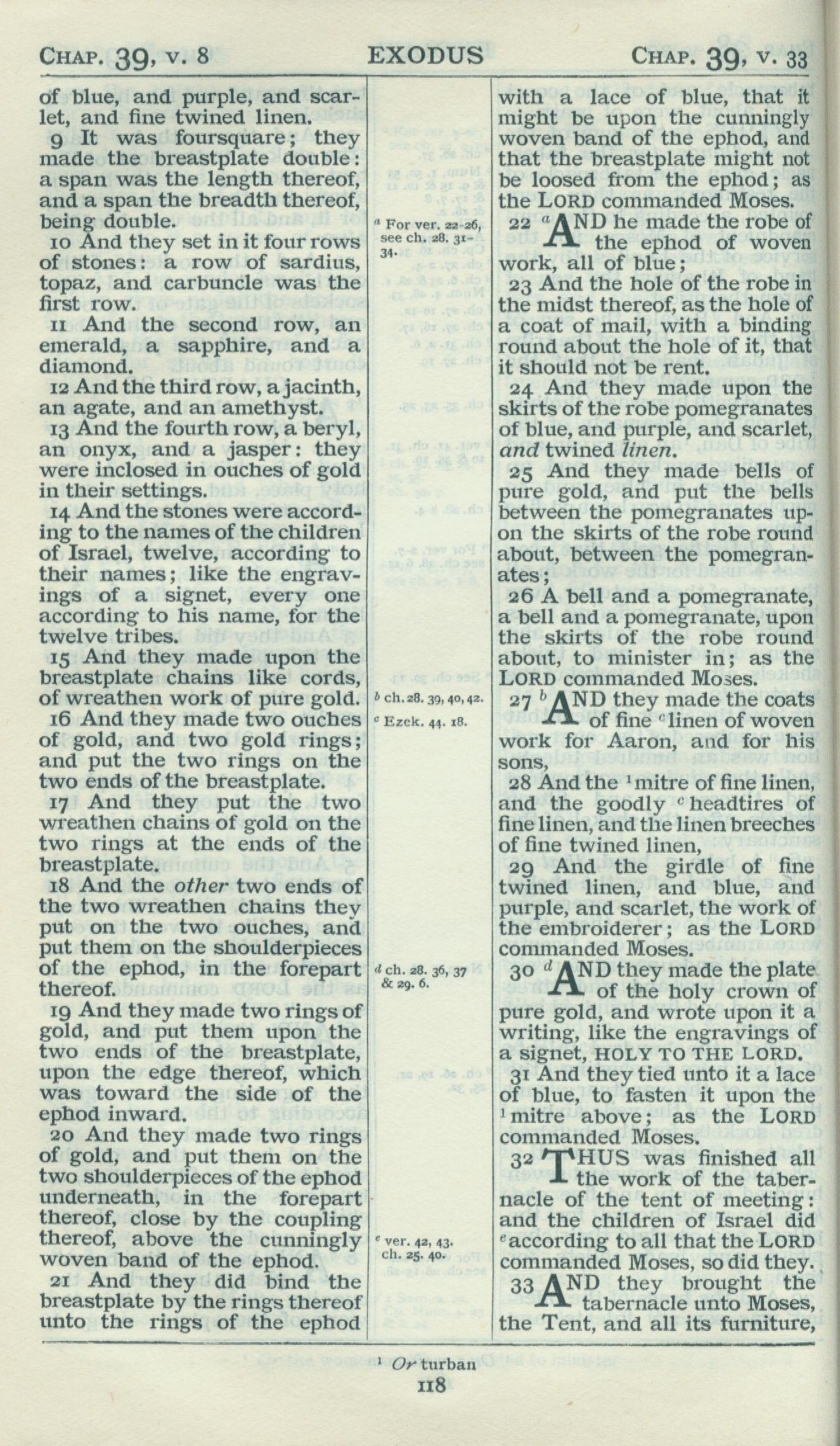 1898年Revised Version 出埃及记 39 章 9 节到 39 章 33 节