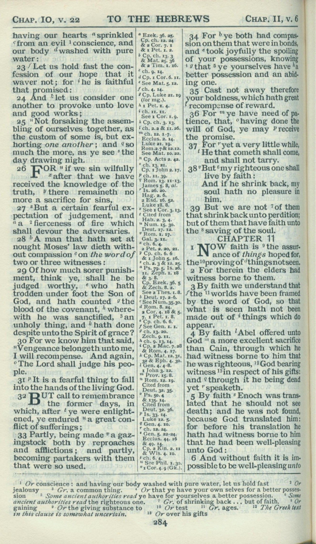 1898年Revised Version 希伯来书 10 章 23 节到 11 章 6 节