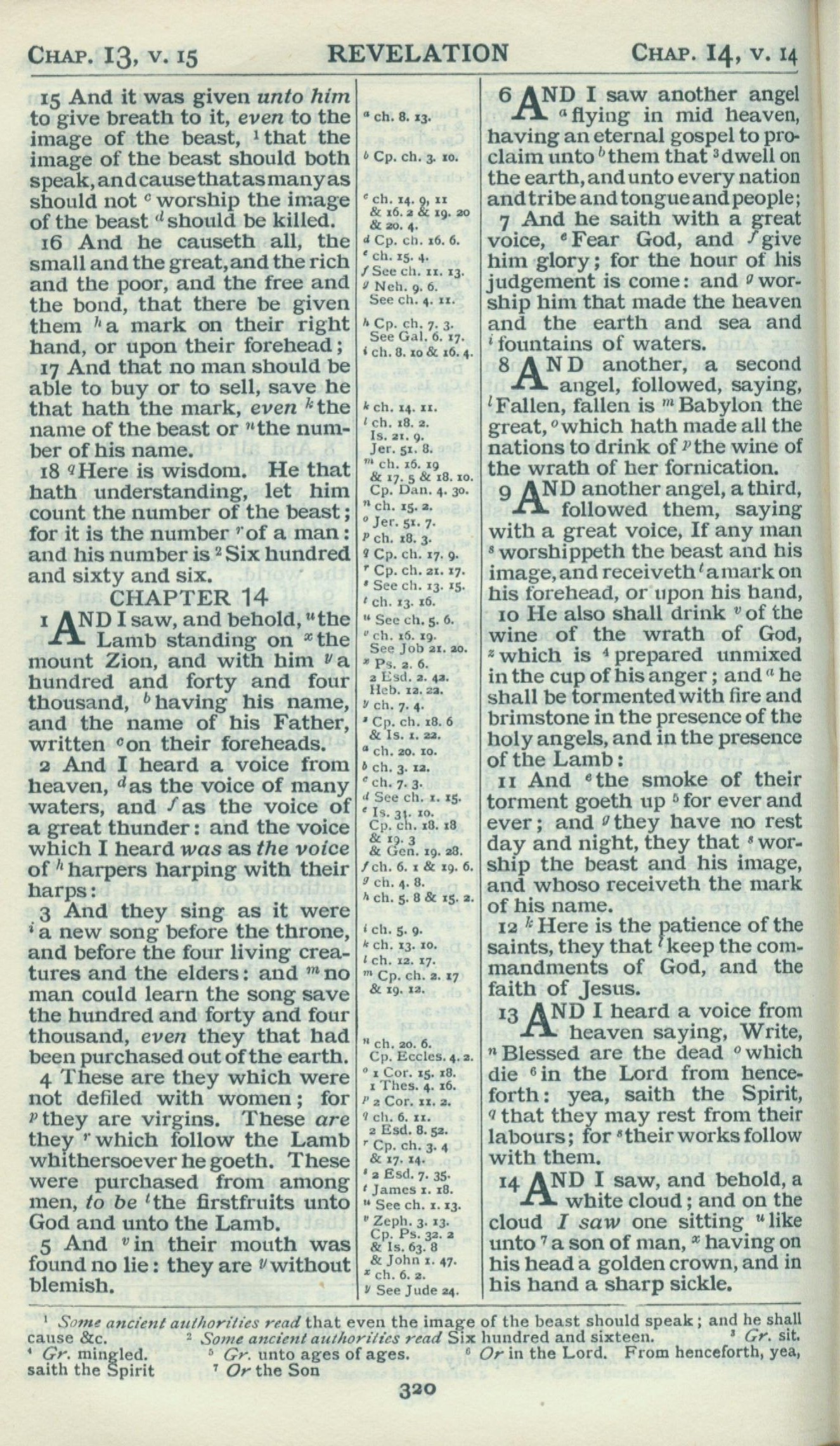 1898年Revised Version 启示录 13 章 15 节到 14 章 14 节