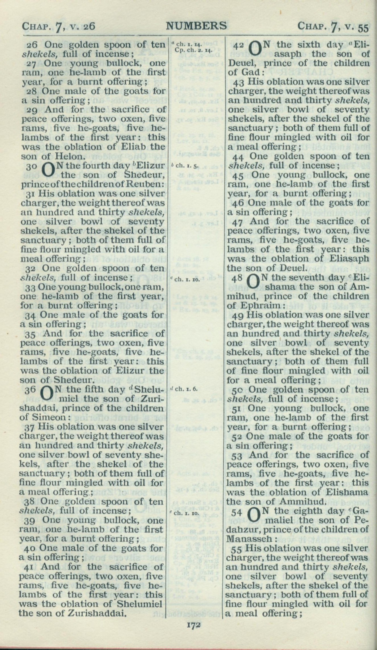 1898年Revised Version 民数记 7 章 26 节到 7 章 55 节