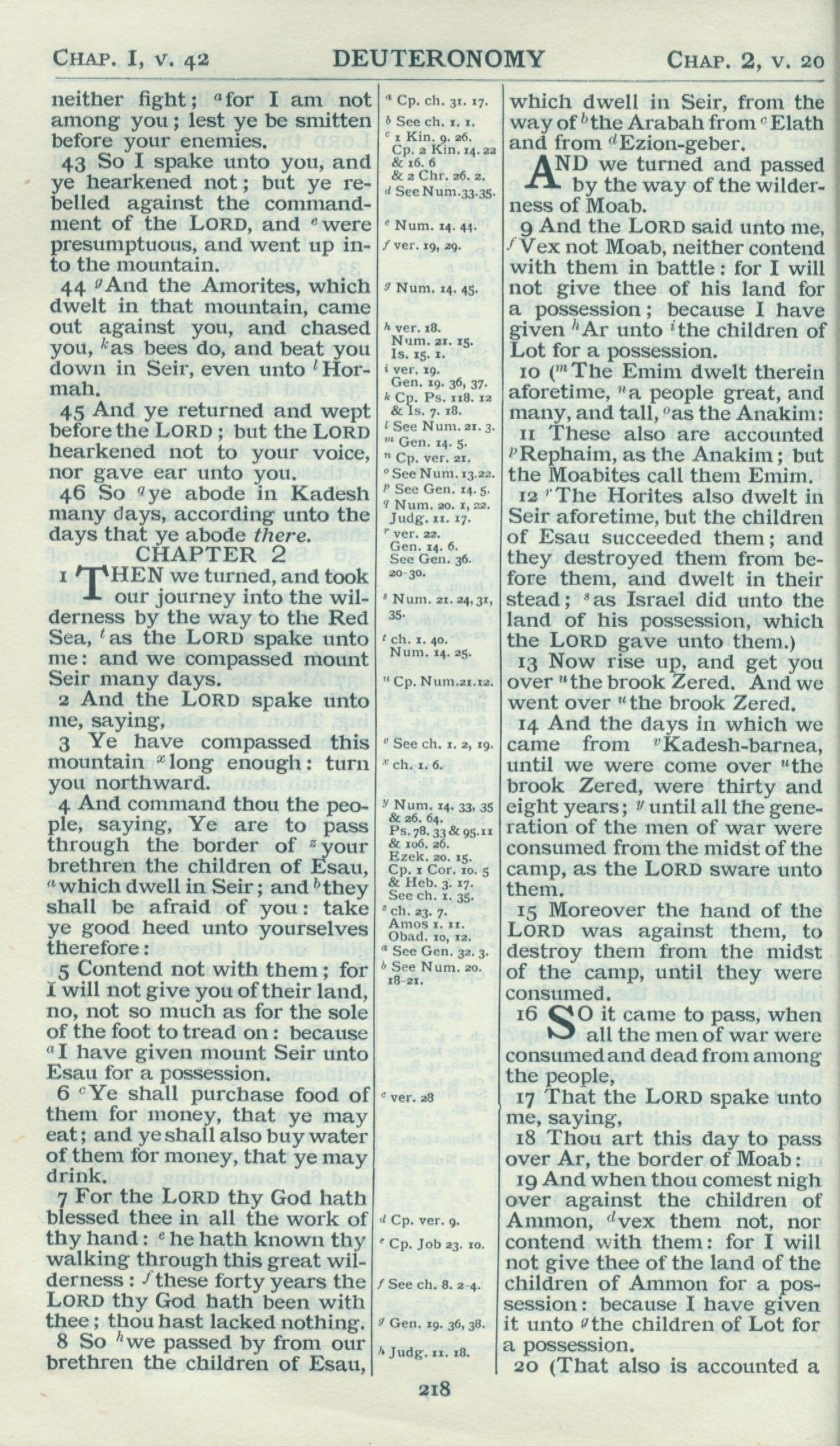 1898年Revised Version 申命记 1 章 43 节到 2 章 19 节
