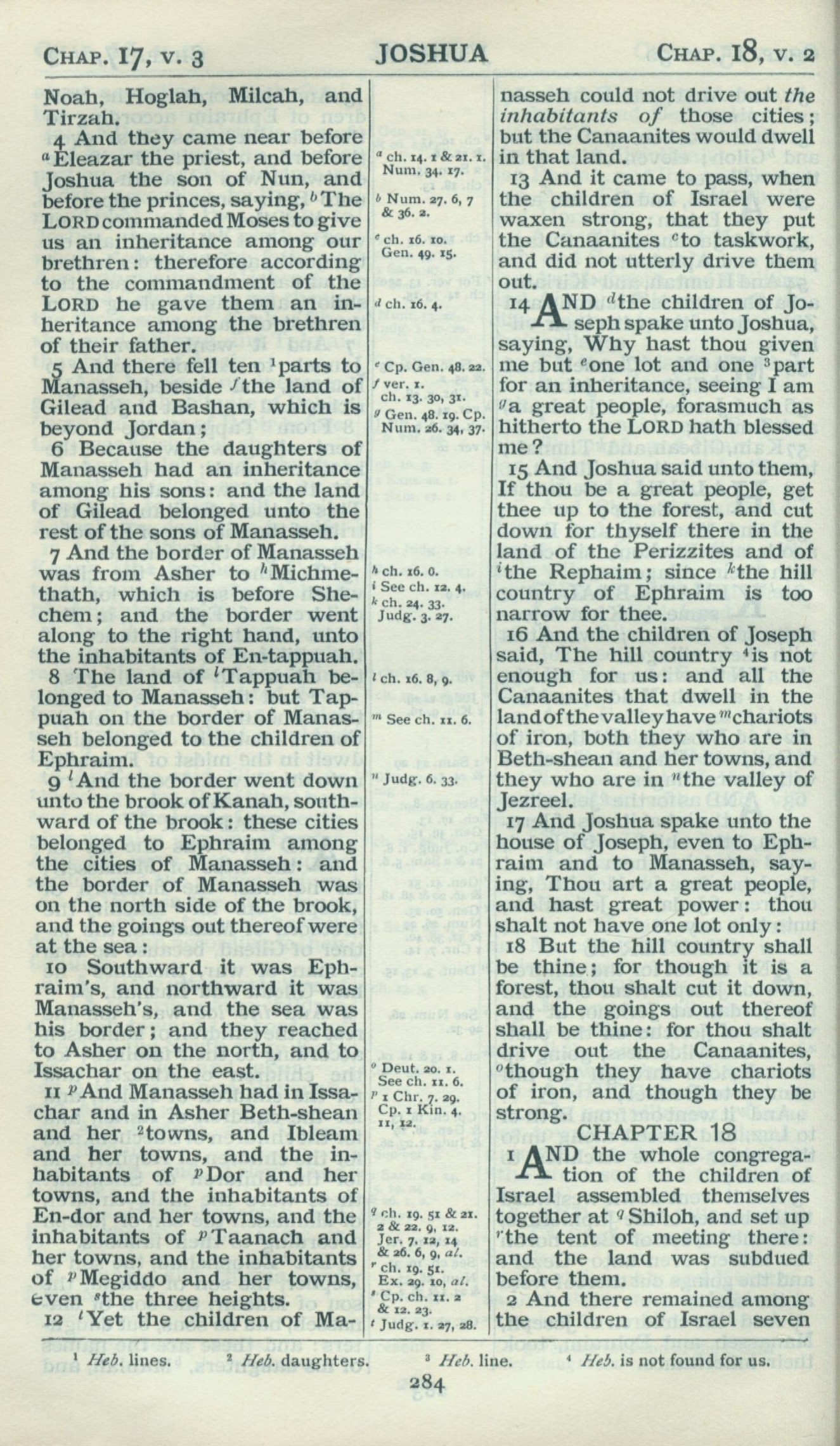 1898年Revised Version 约书亚记 17 章 4 节到 18 章 2 节