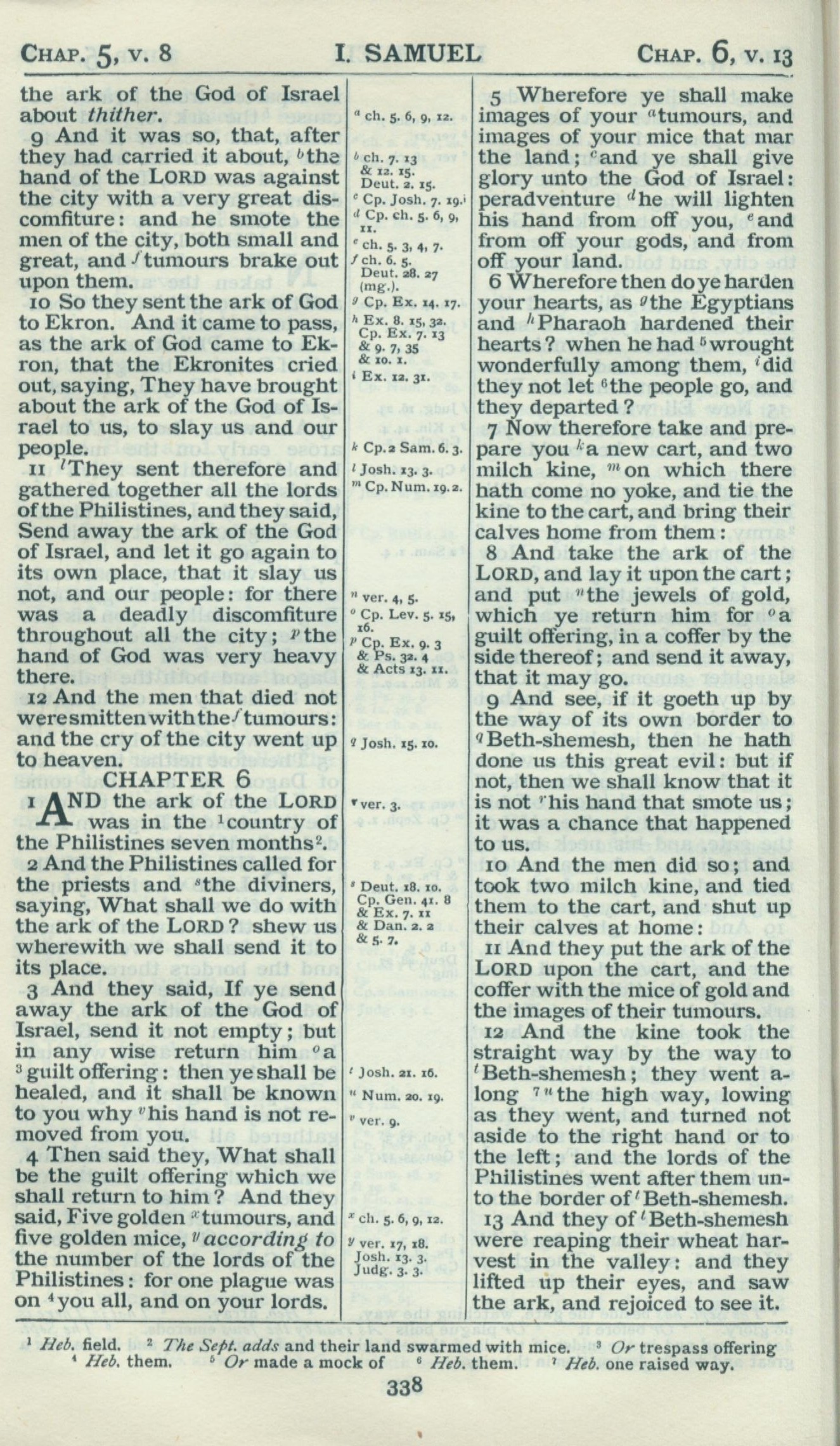 1898年Revised Version 撒母耳记上 5 章 9 节到 6 章 13 节