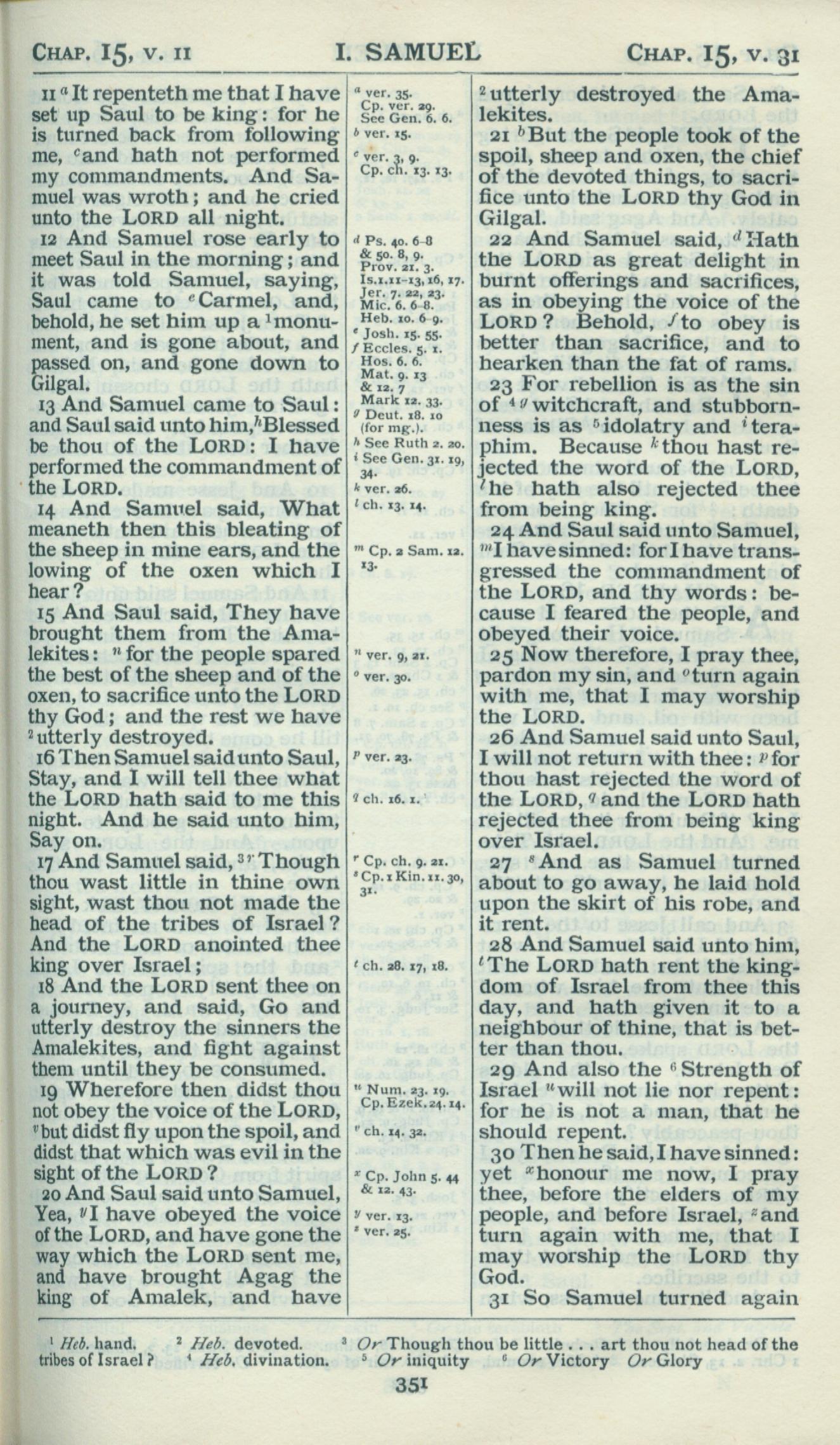 1898年Revised Version 撒母耳记上 15 章 11 节到 15 章 31 节