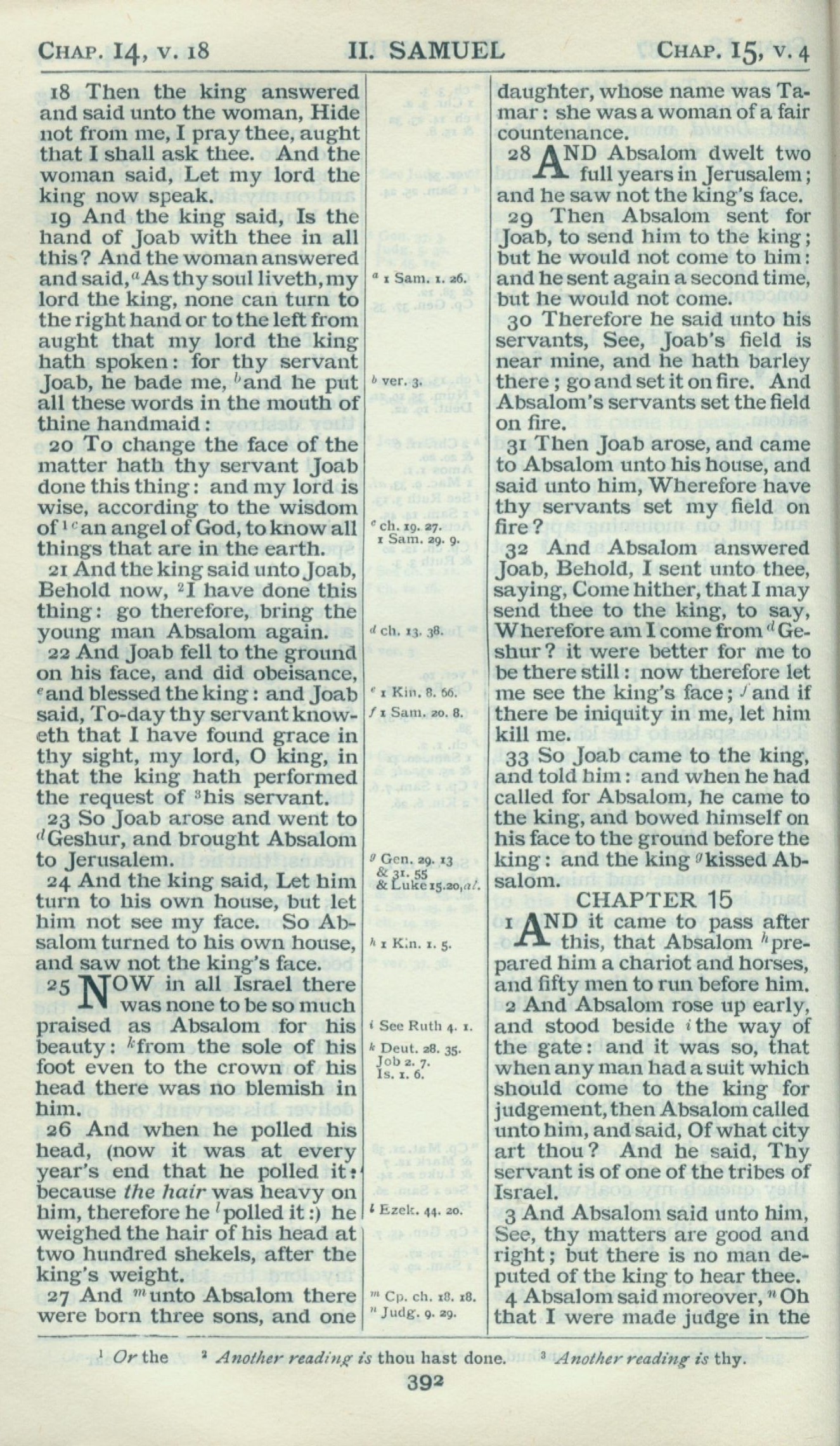1898年Revised Version 撒母耳记下 14 章 18 节到 15 章 4 节