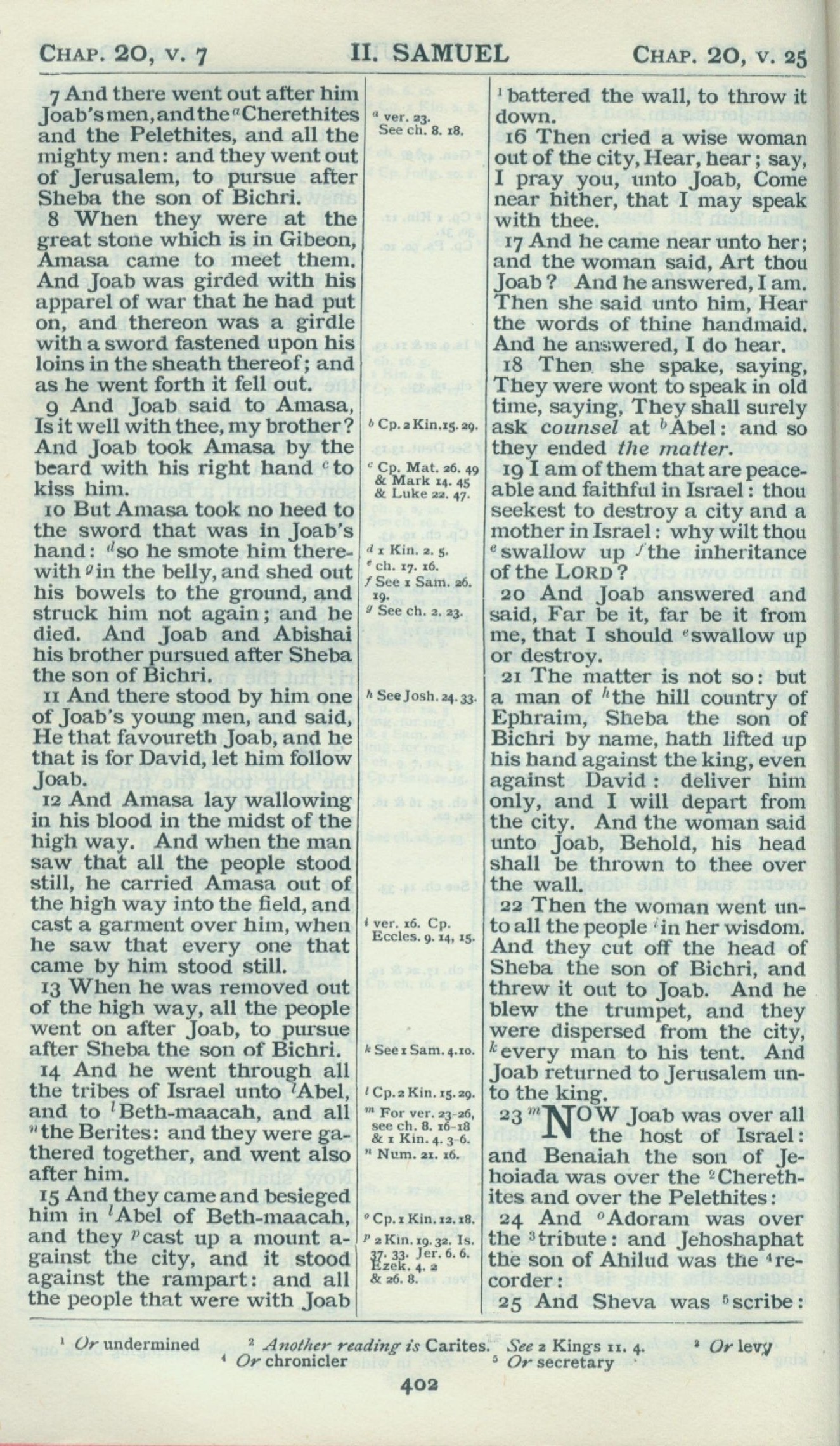 1898年Revised Version 撒母耳记下 20 章 7 节到 20 章 25 节