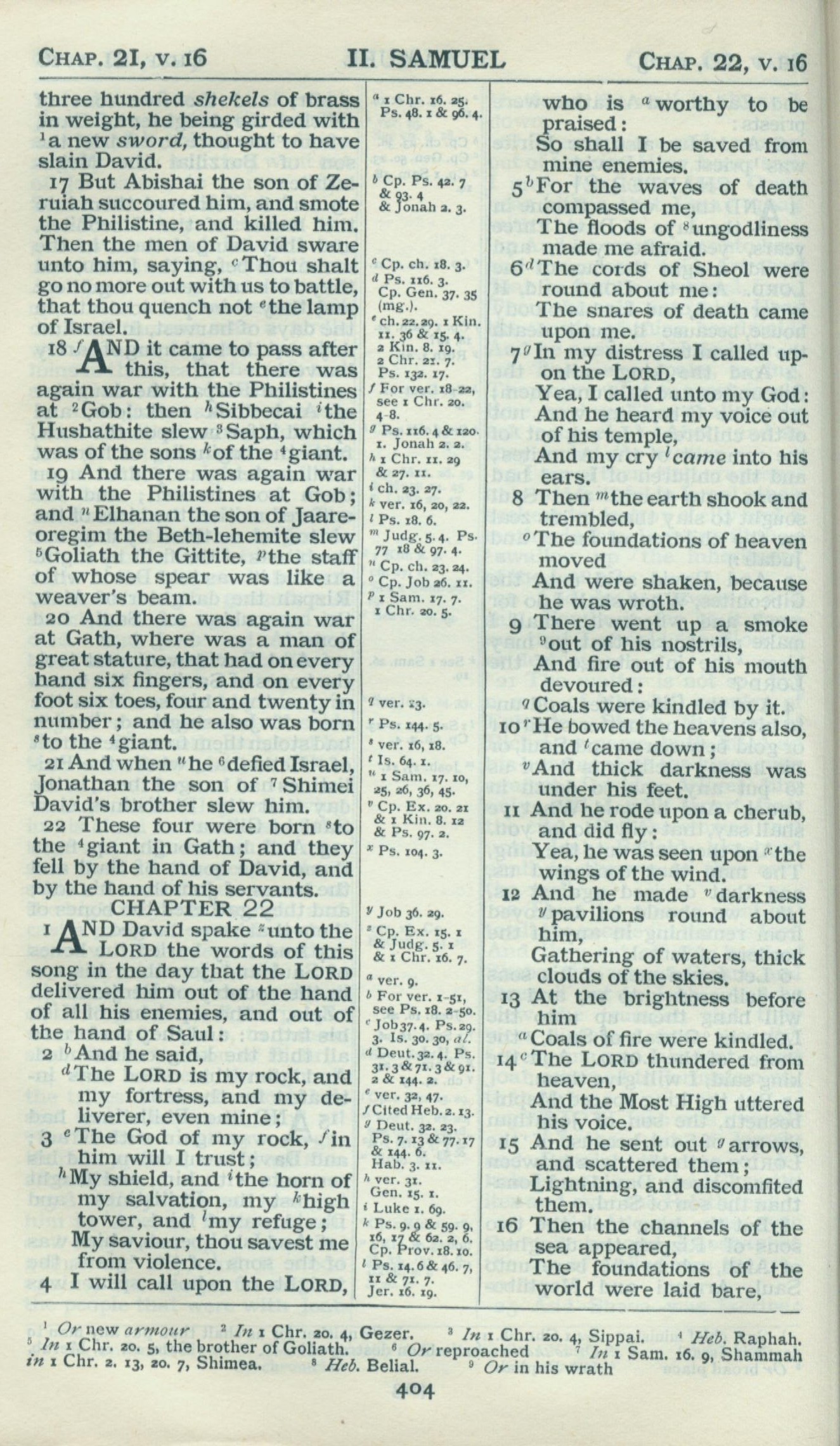 1898年Revised Version 撒母耳记下 21 章 17 节到 22 章 16 节