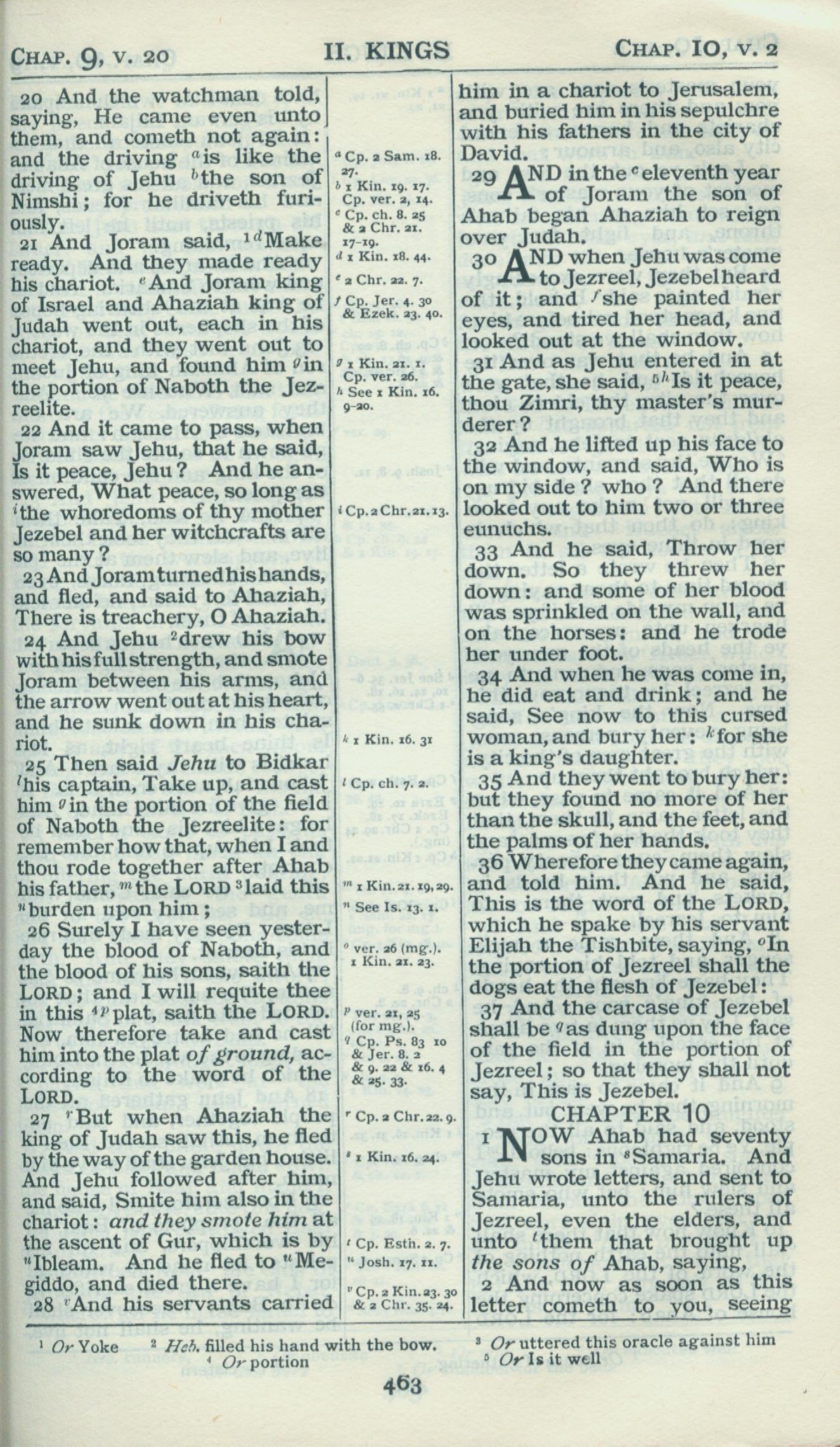 1898年Revised Version 列王纪下 9 章 20 节到 10 章 2 节