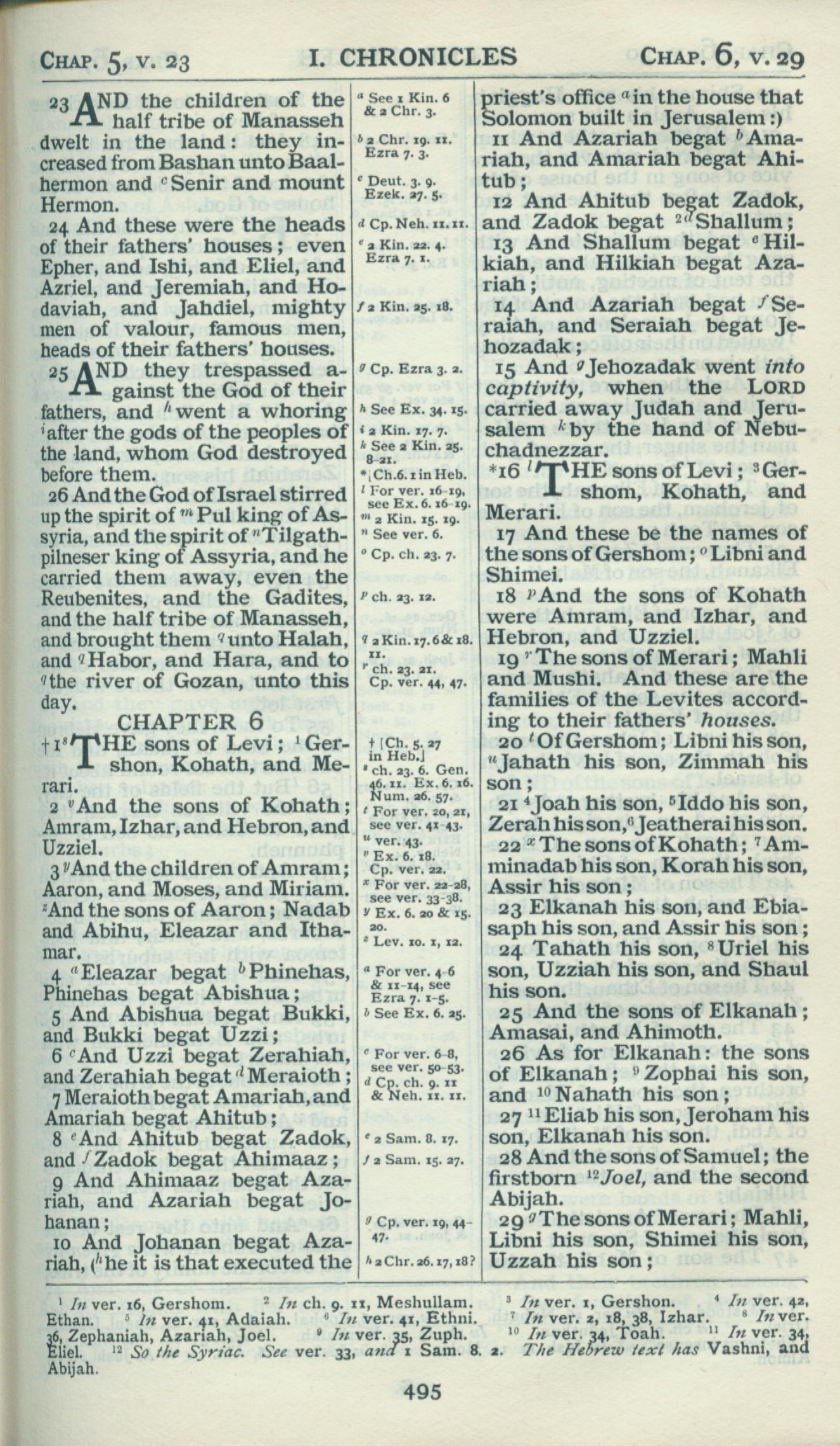 1898年Revised Version 历代志上 5 章 23 节到 6 章 29 节