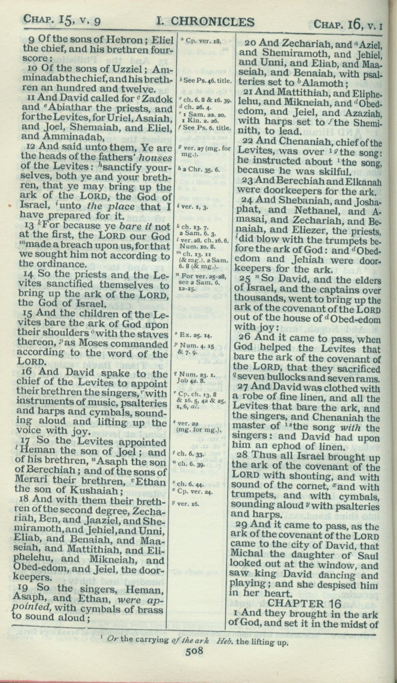 1898年Revised Version 历代志上 15 章 9 节到 16 章 1 节