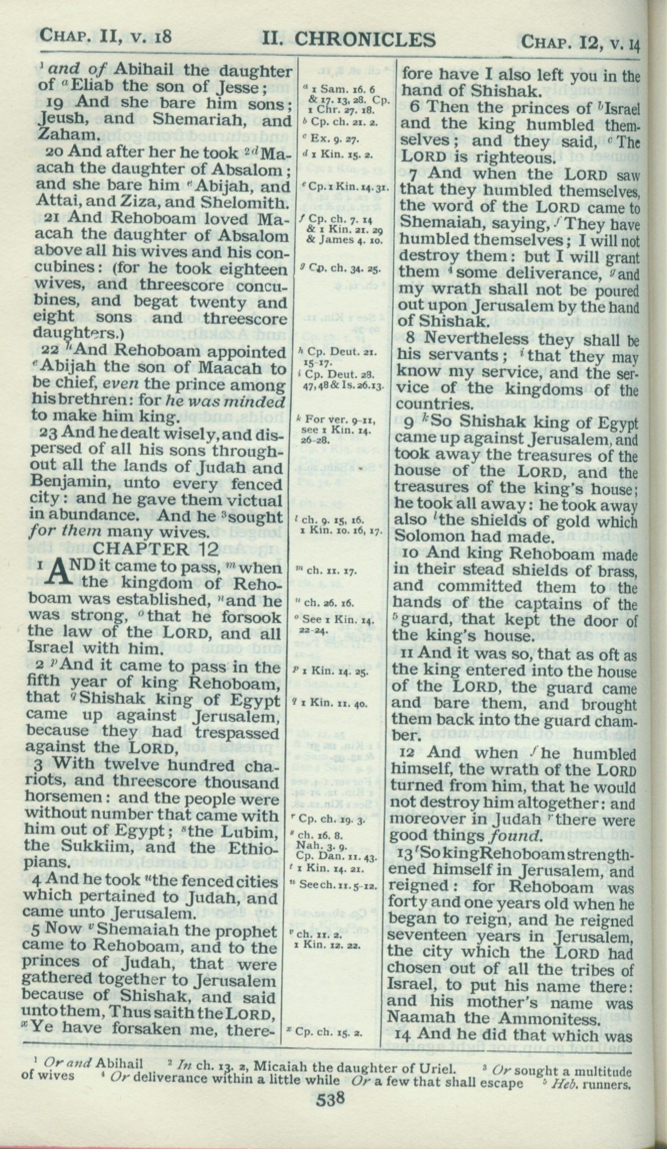 1898年Revised Version 历代志下 11 章 19 节到 12 章 14 节