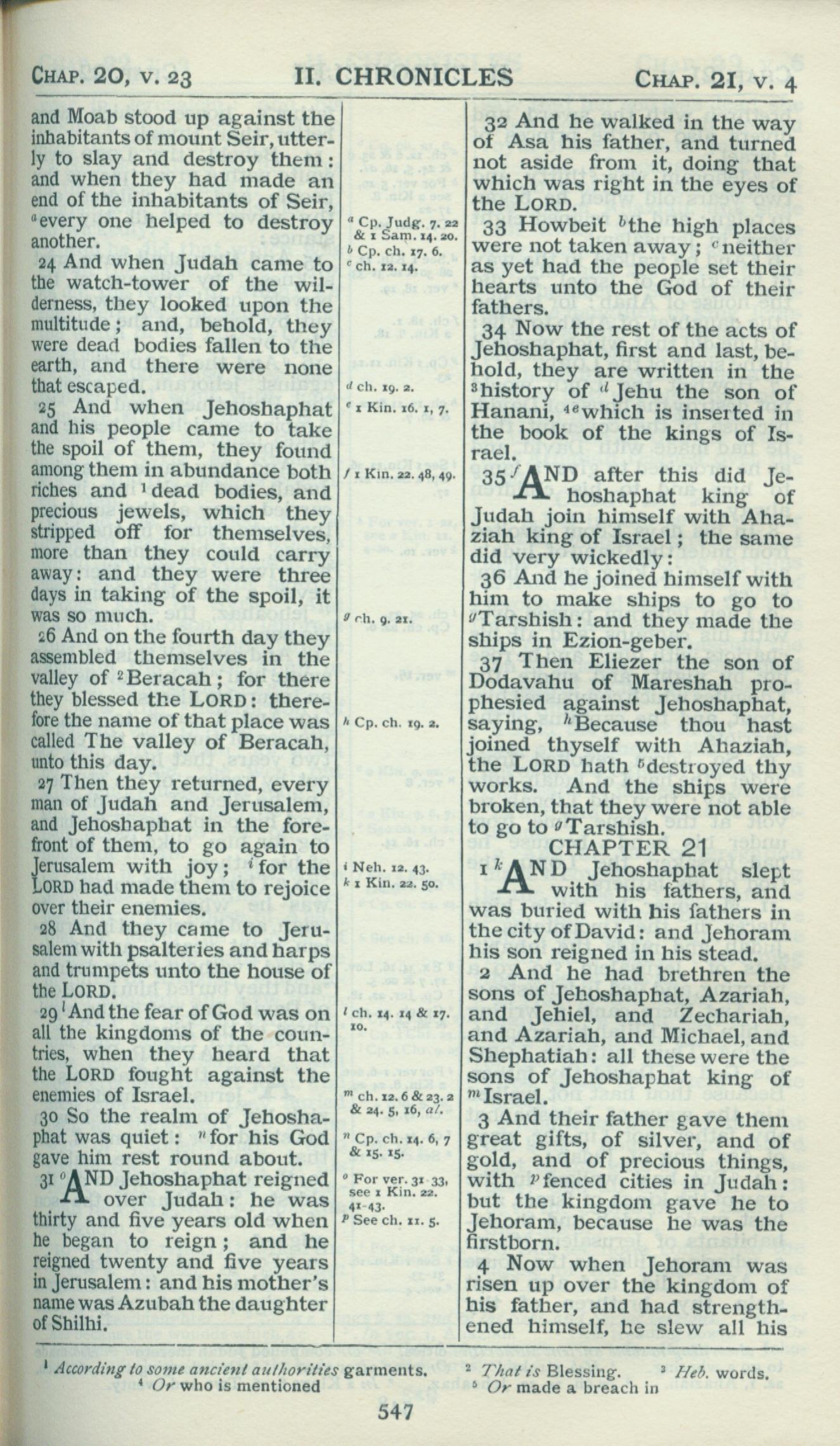 1898年Revised Version 历代志下 20 章 23 节到 21 章 4 节