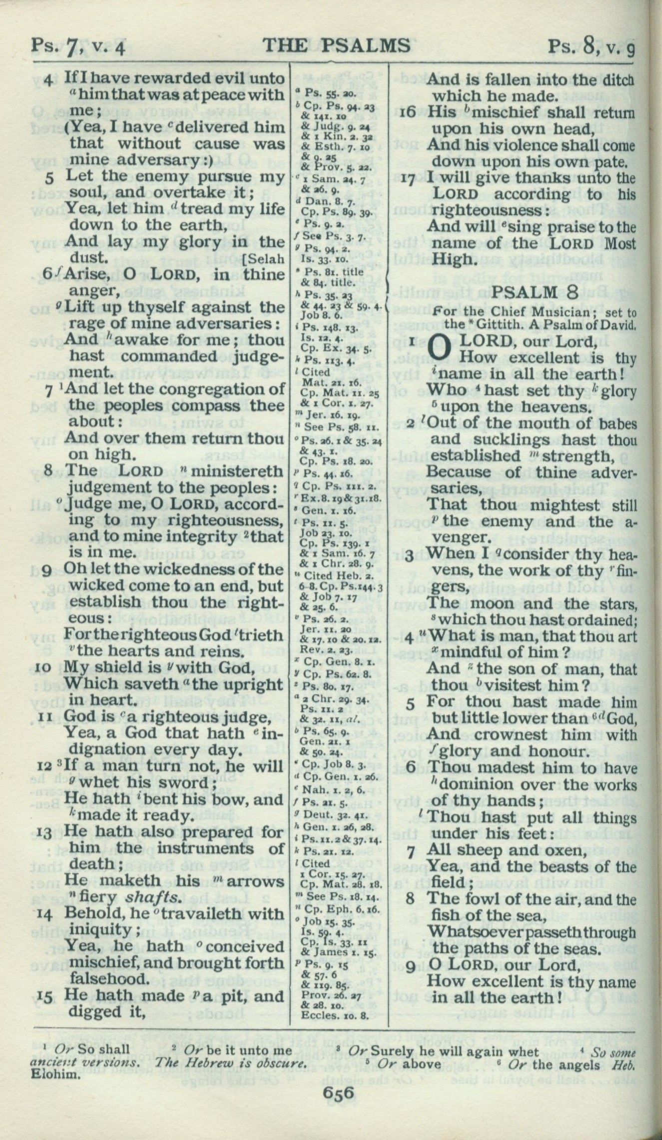 1898年Revised Version 诗篇 7 章 4 节到 8 章 9 节