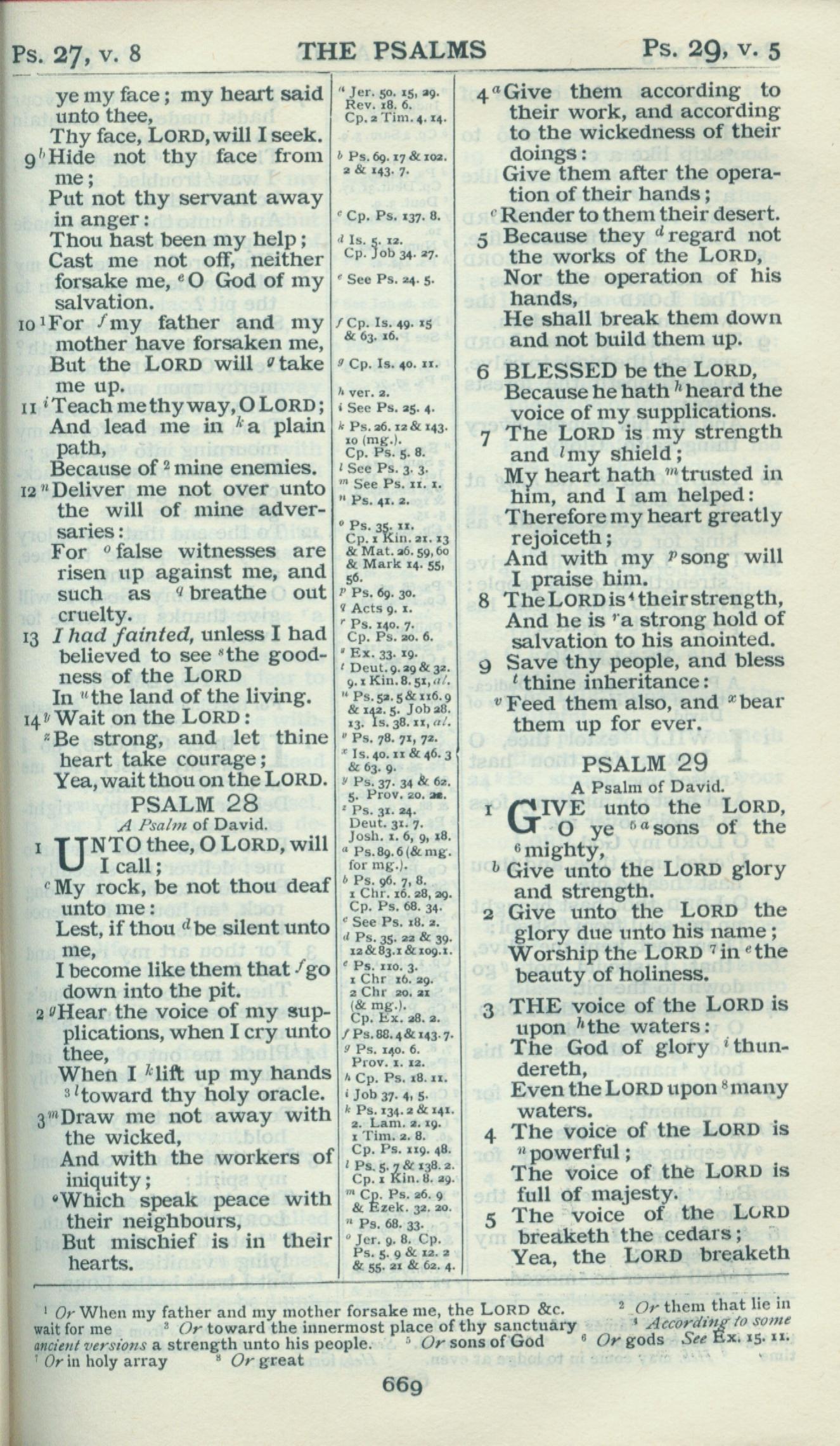 1898年Revised Version 诗篇 27 章 9 节到 29 章 5 节