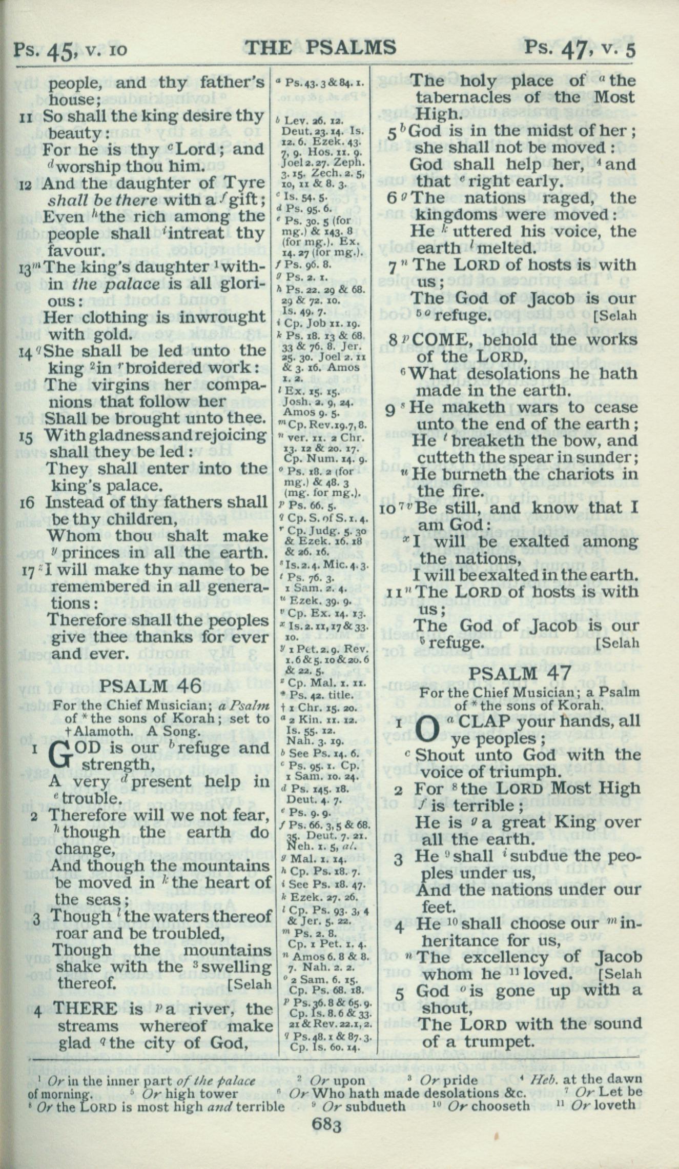 1898年Revised Version 诗篇 45 章 11 节到 47 章 5 节