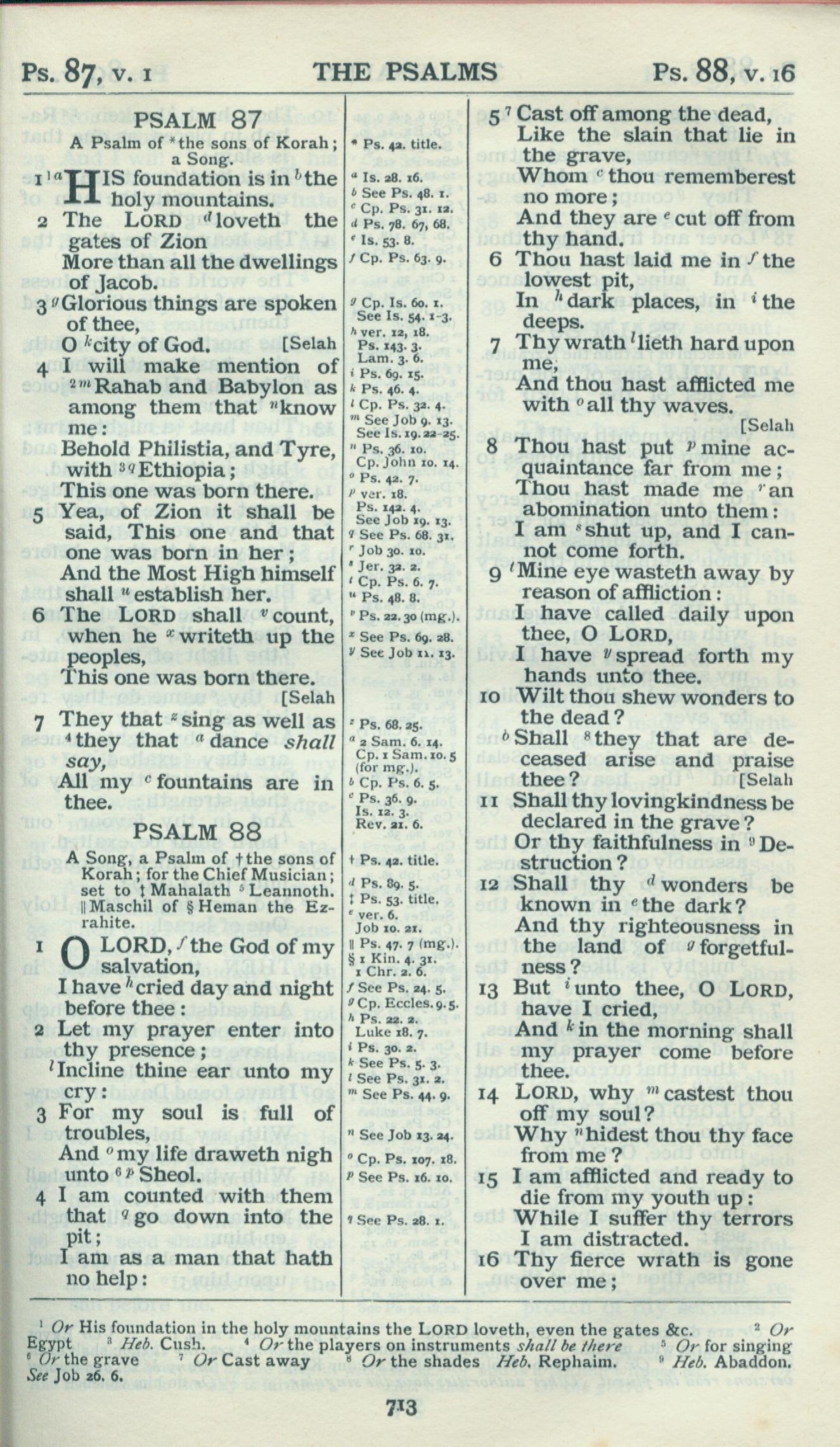1898年Revised Version 诗篇 87 章 1 节到 88 章 16 节