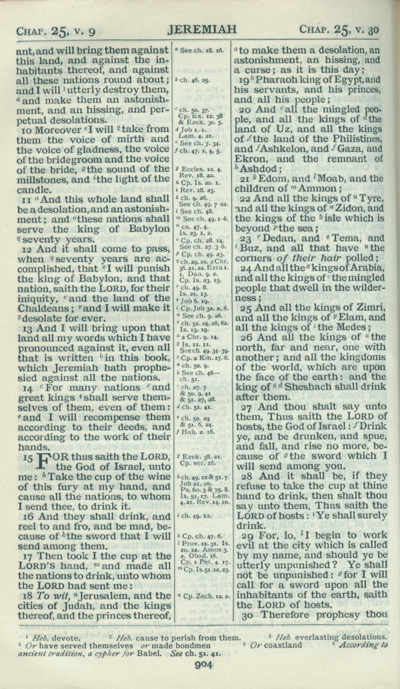 1898年Revised Version 耶利米书 25 章 10 节到 25 章 29 节