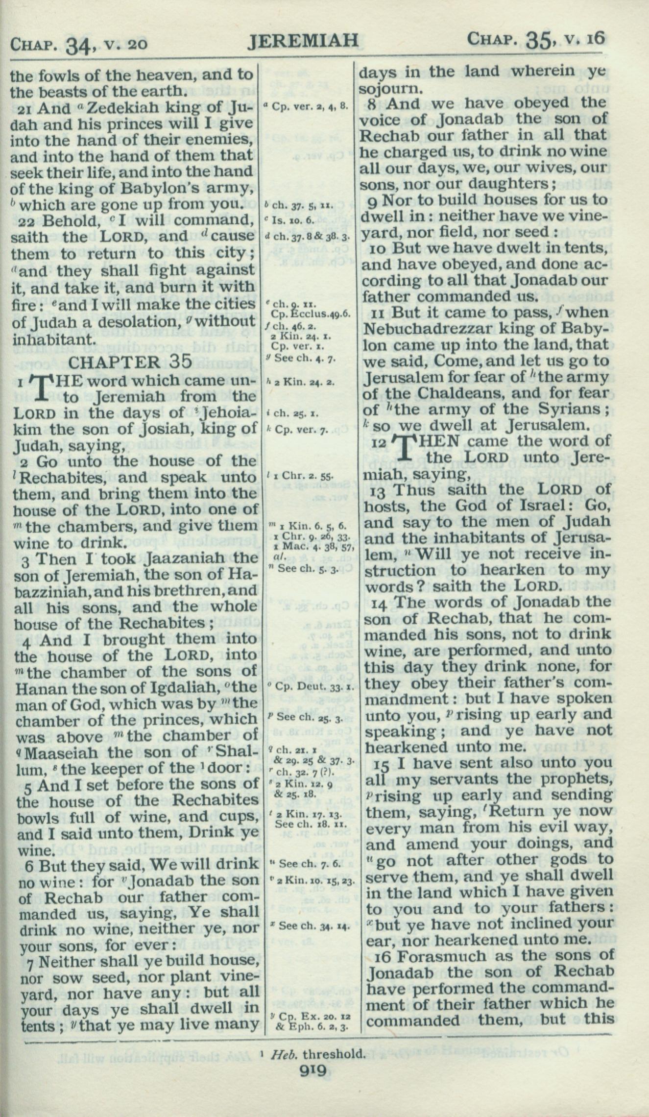 1898年Revised Version 耶利米书 34 章 21 节到 35 章 16 节