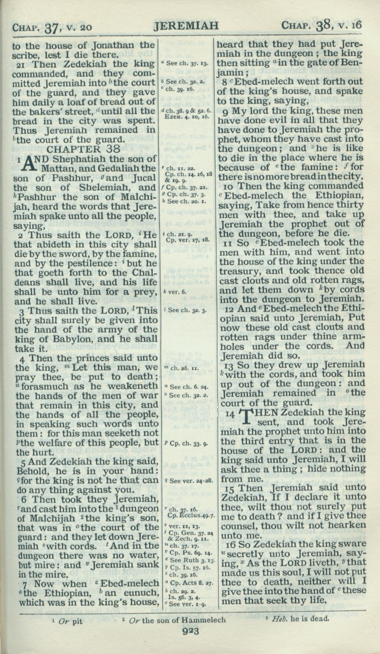 1898年Revised Version 耶利米书 37 章 21 节到 38 章 16 节