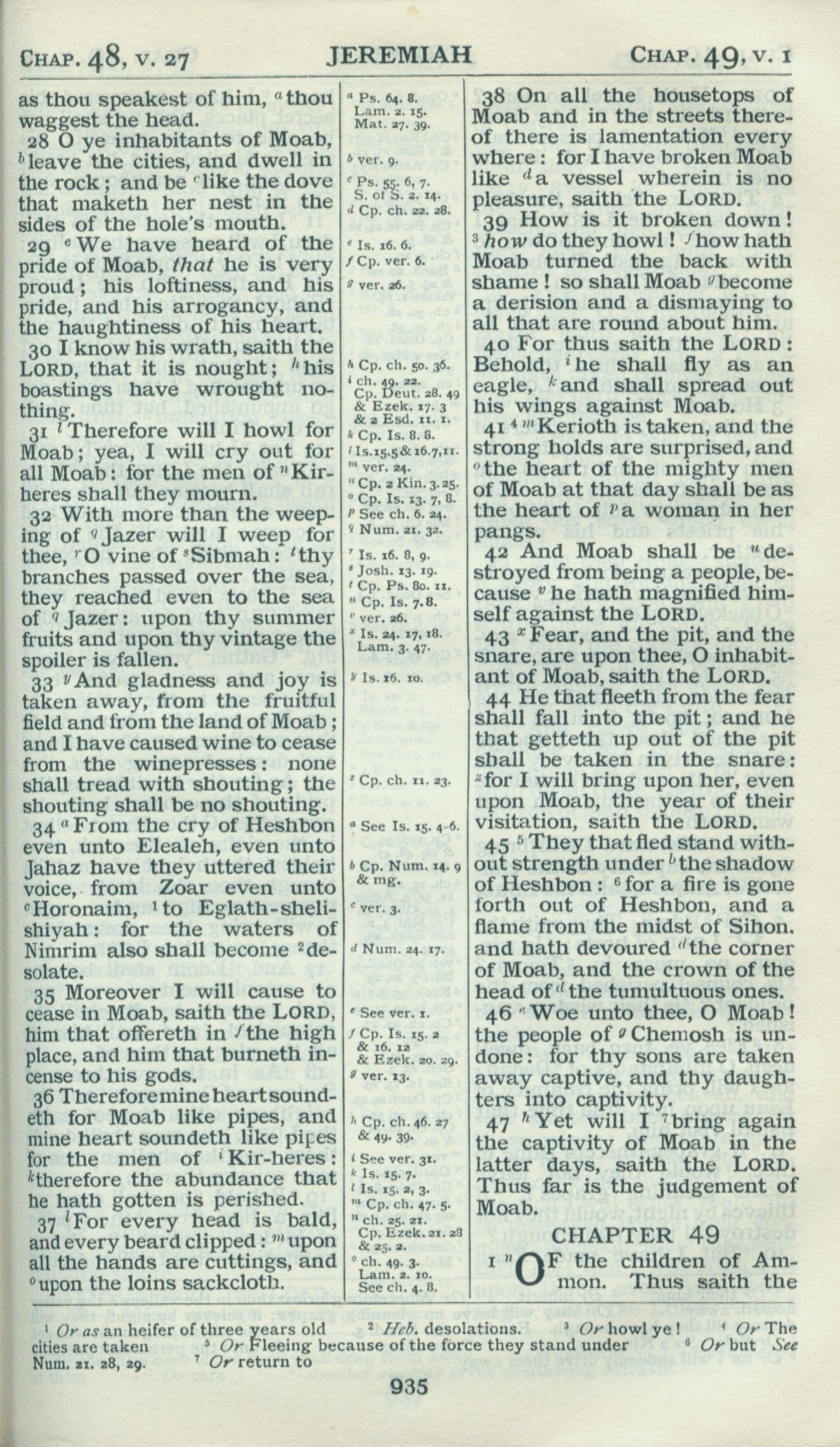 1898年Revised Version 耶利米书 48 章 28 节到 49 章 1 节