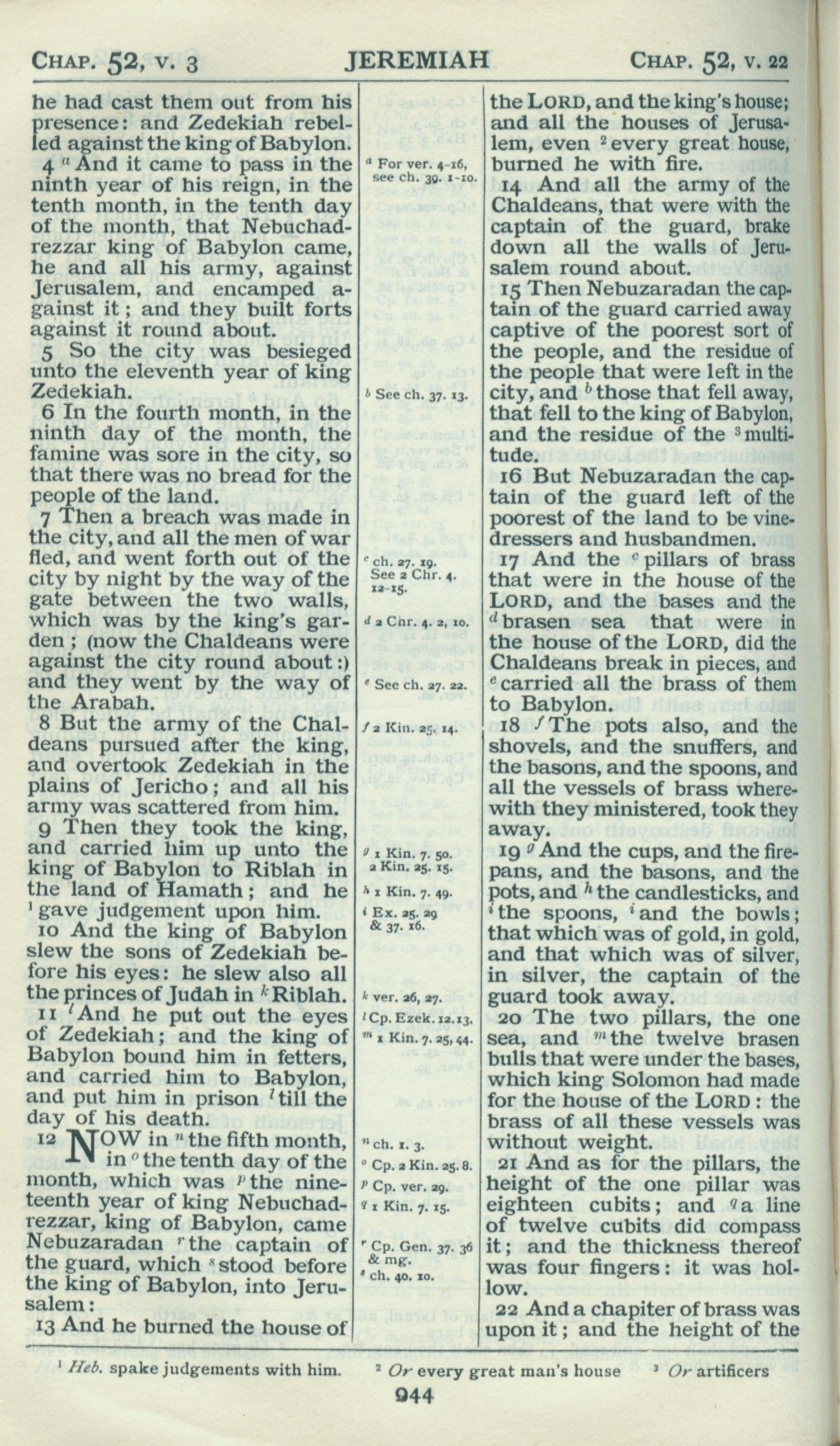 1898年Revised Version 耶利米书 52 章 4 节到 52 章 22 节