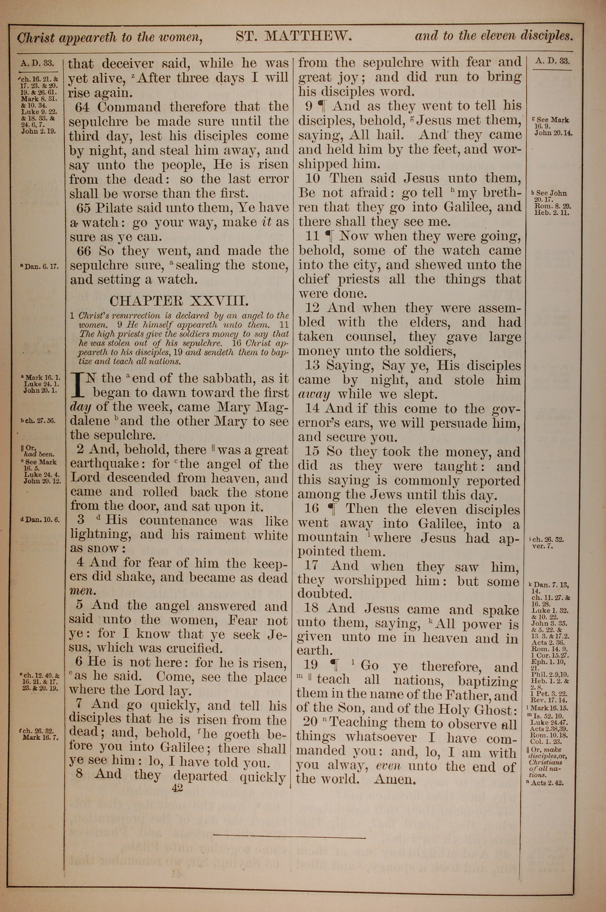 1882年Holy Bible 马太福音 27 章 64 节到 28 章 20 节