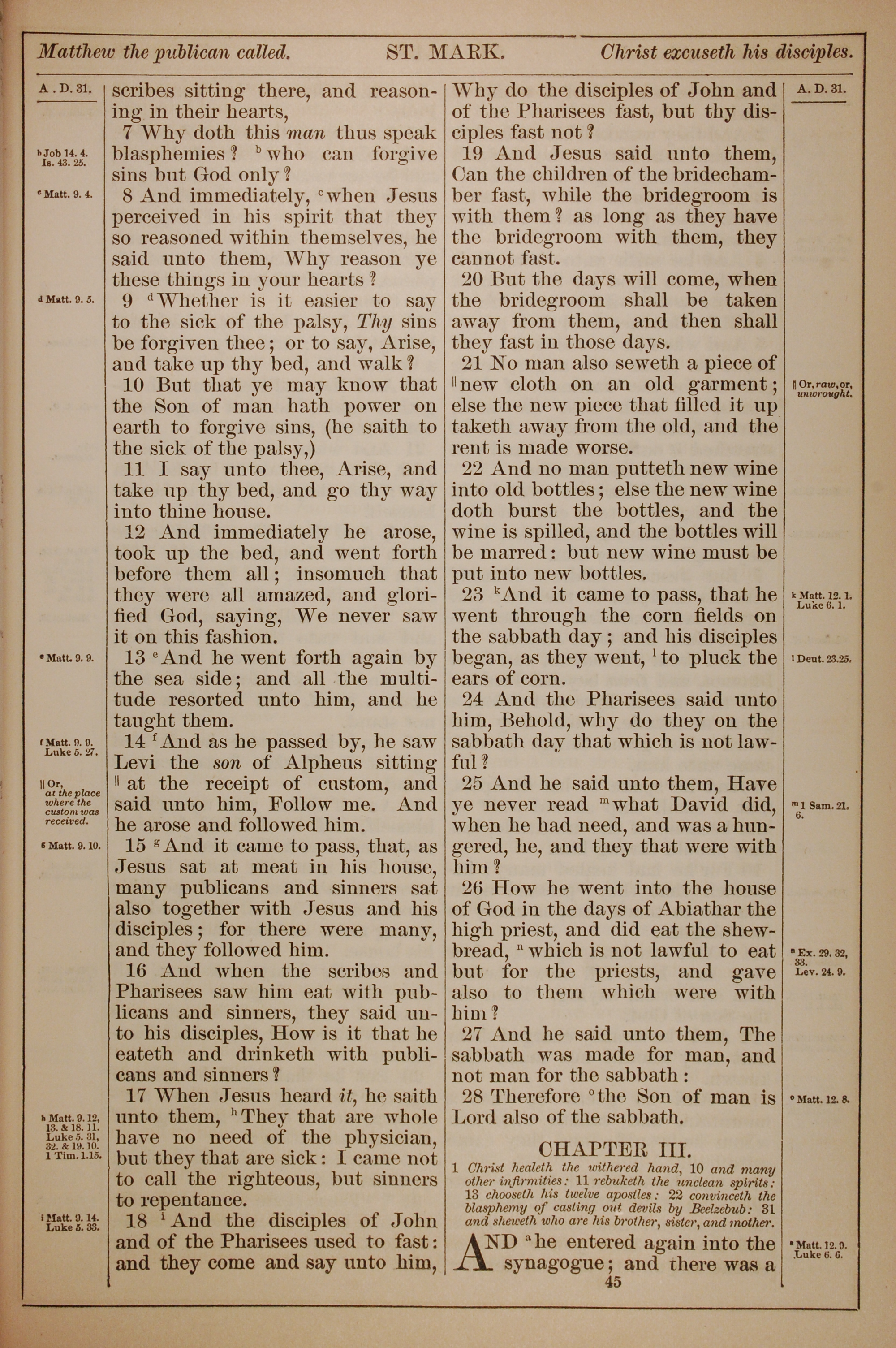 1882年Holy Bible 马可福音 2 章 7 节到 3 章 1 节