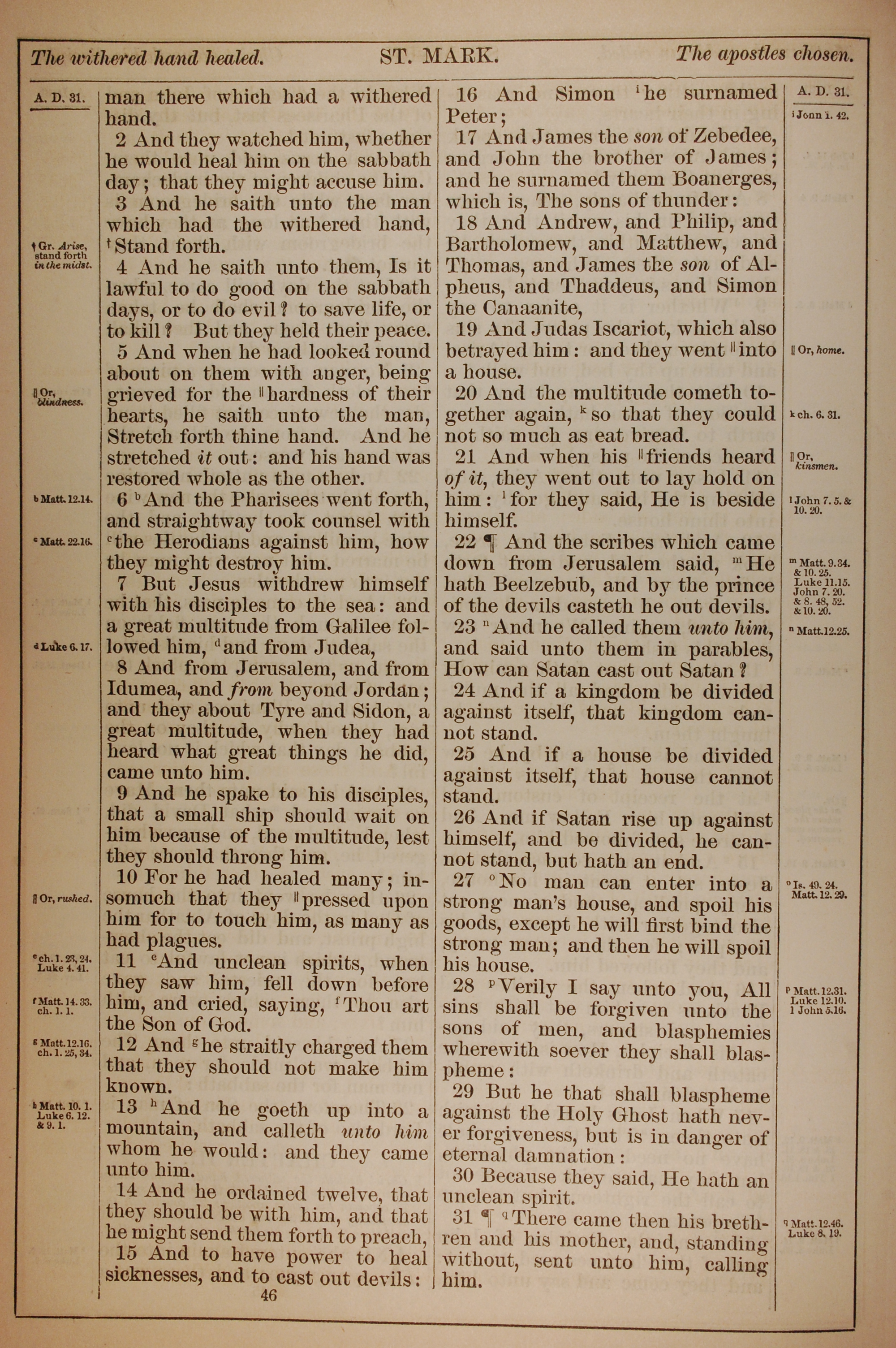 1882年Holy Bible 马可福音 3 章 2 节到 3 章 31 节