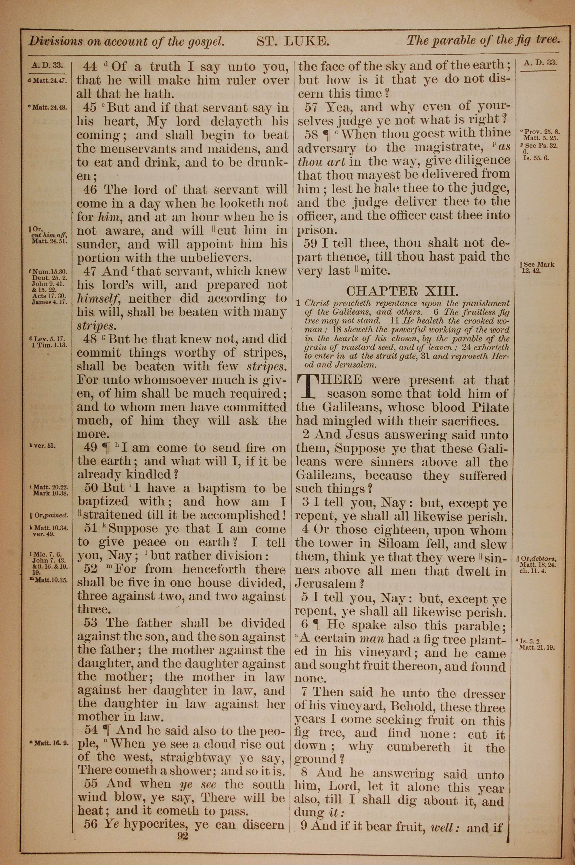 1882年Holy Bible 路加福音 12 章 44 节到 13 章 9 节