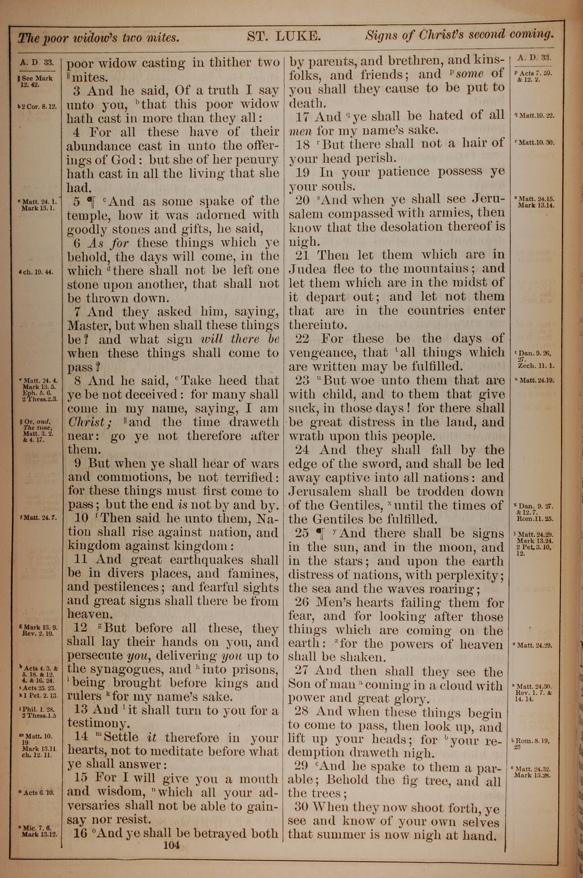1882年Holy Bible 路加福音 21 章 3 节到 21 章 30 节
