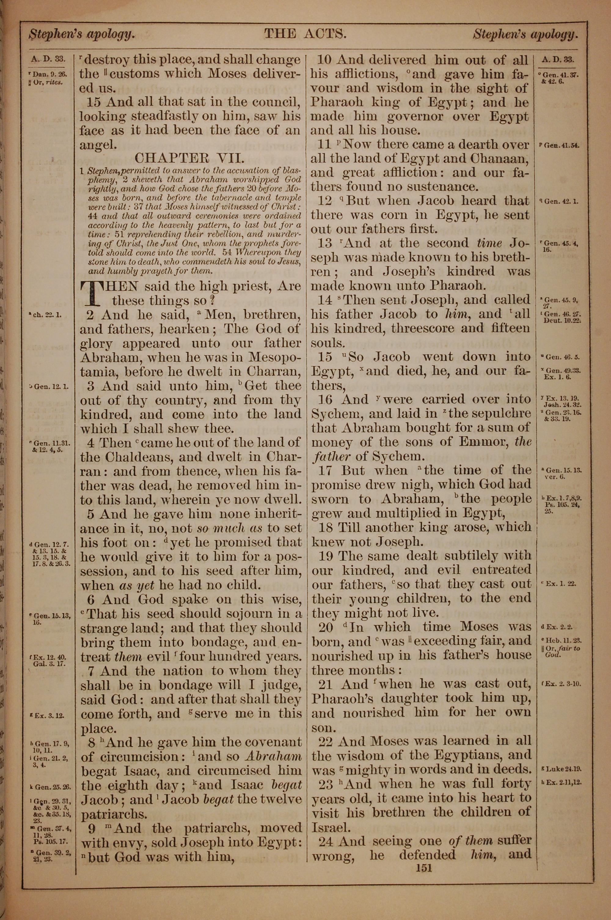1882年Holy Bible 使徒行传 6 章 15 节到 7 章 24 节