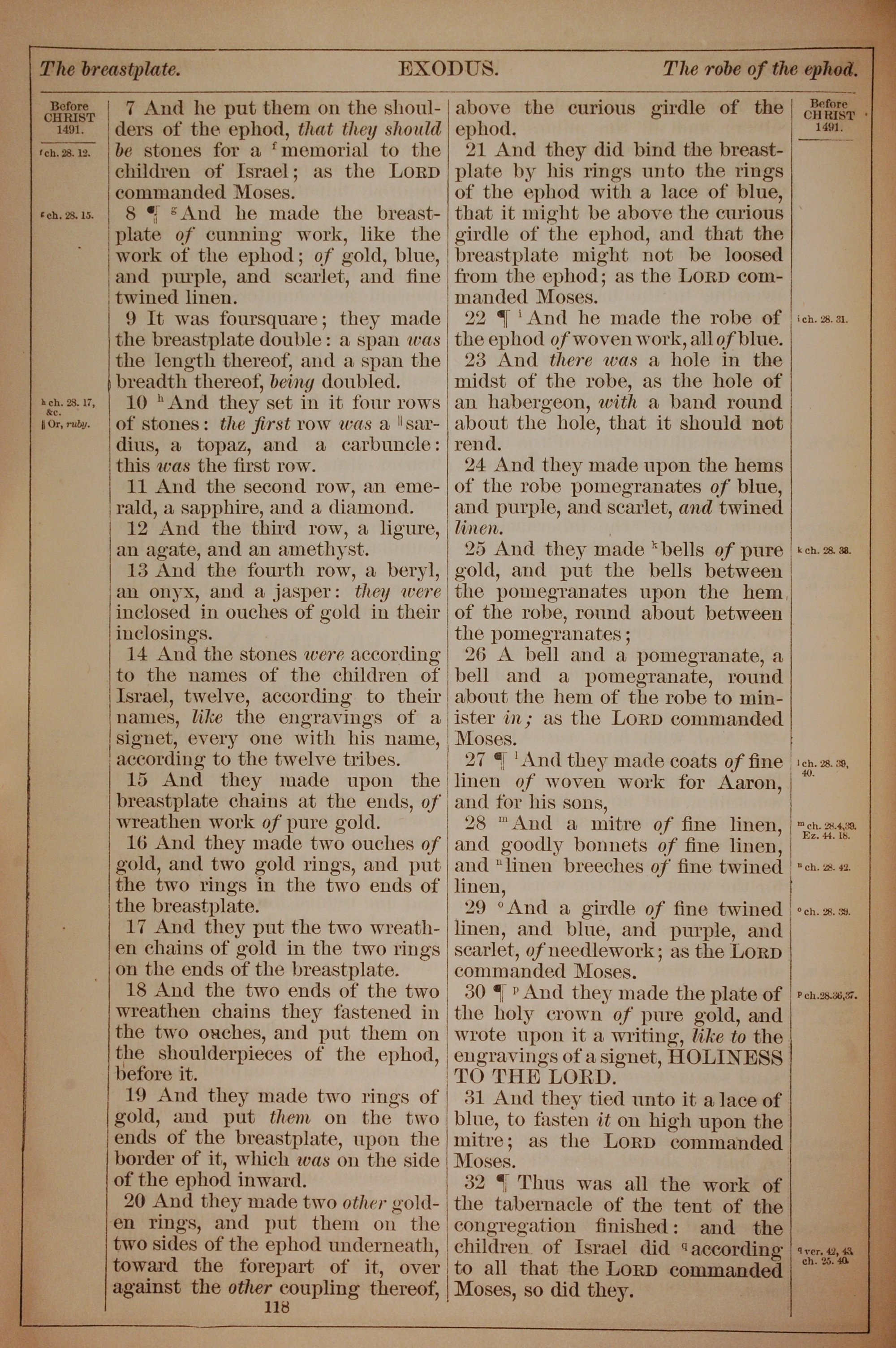 1882年Holy Bible 出埃及记 39 章 7 节到 39 章 32 节