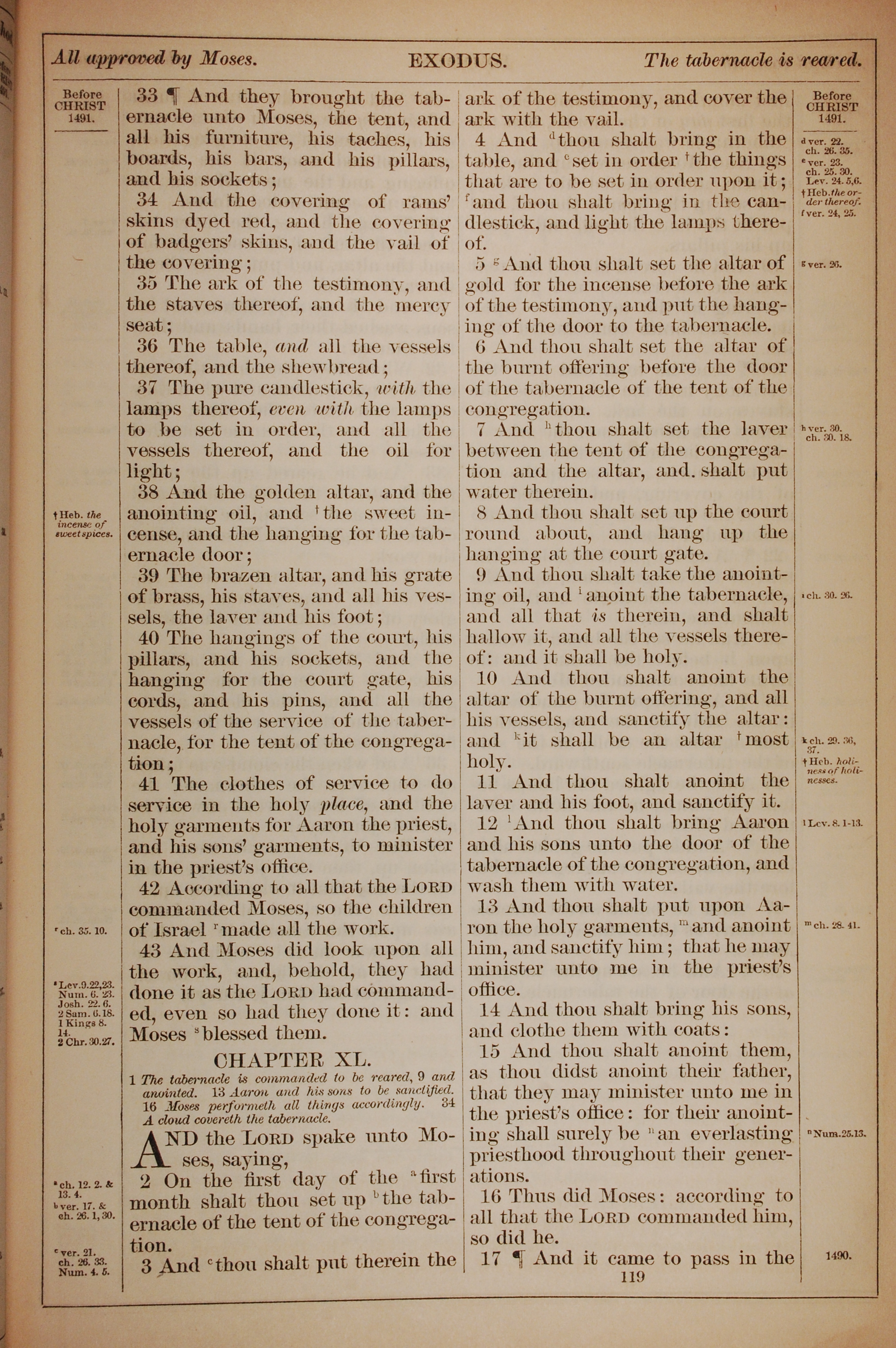 1882年Holy Bible 出埃及记 39 章 33 节到 40 章 17 节
