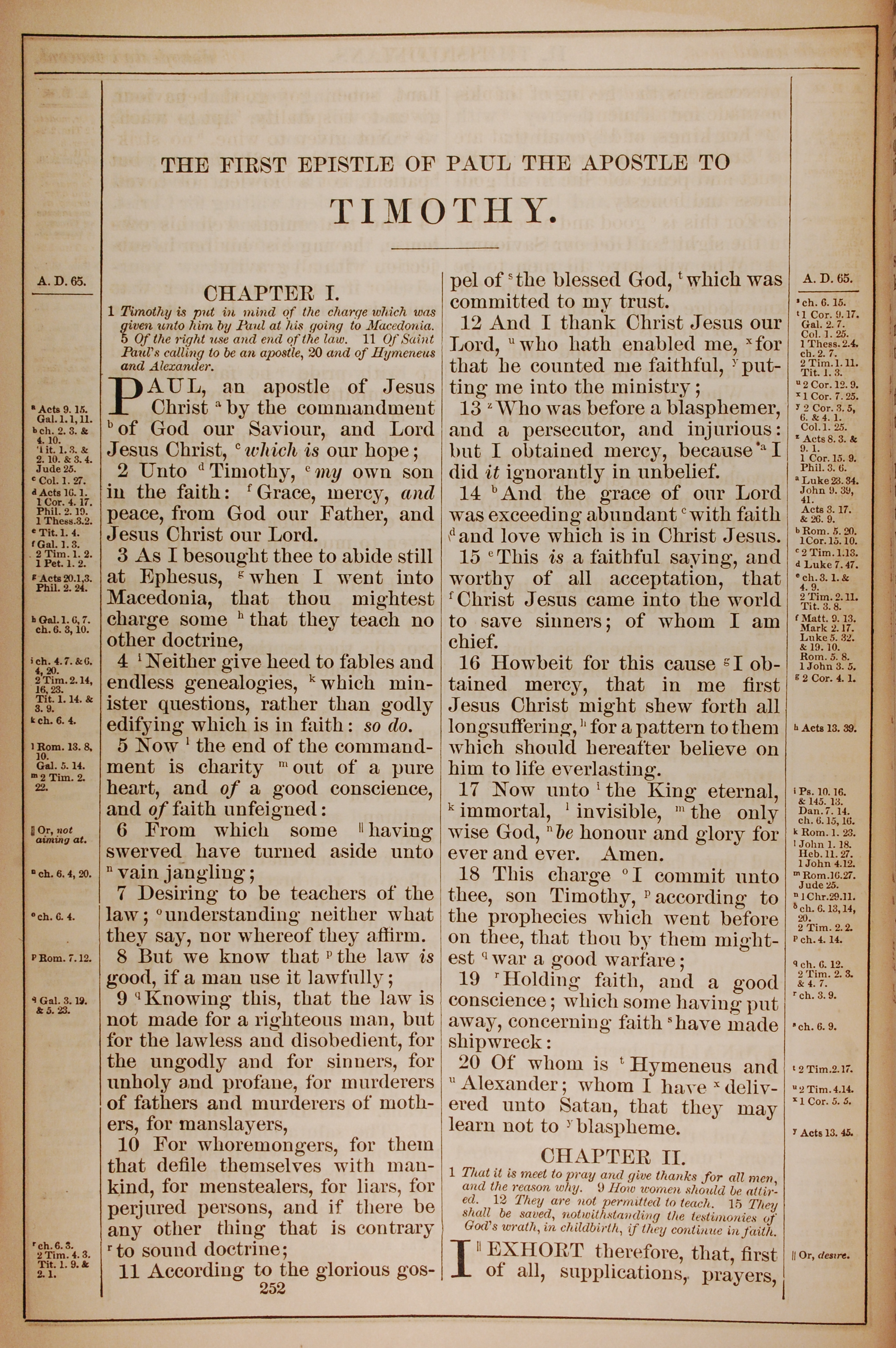 1882年Holy Bible 提摩太前书 1 章 1 节到 2 章 1 节