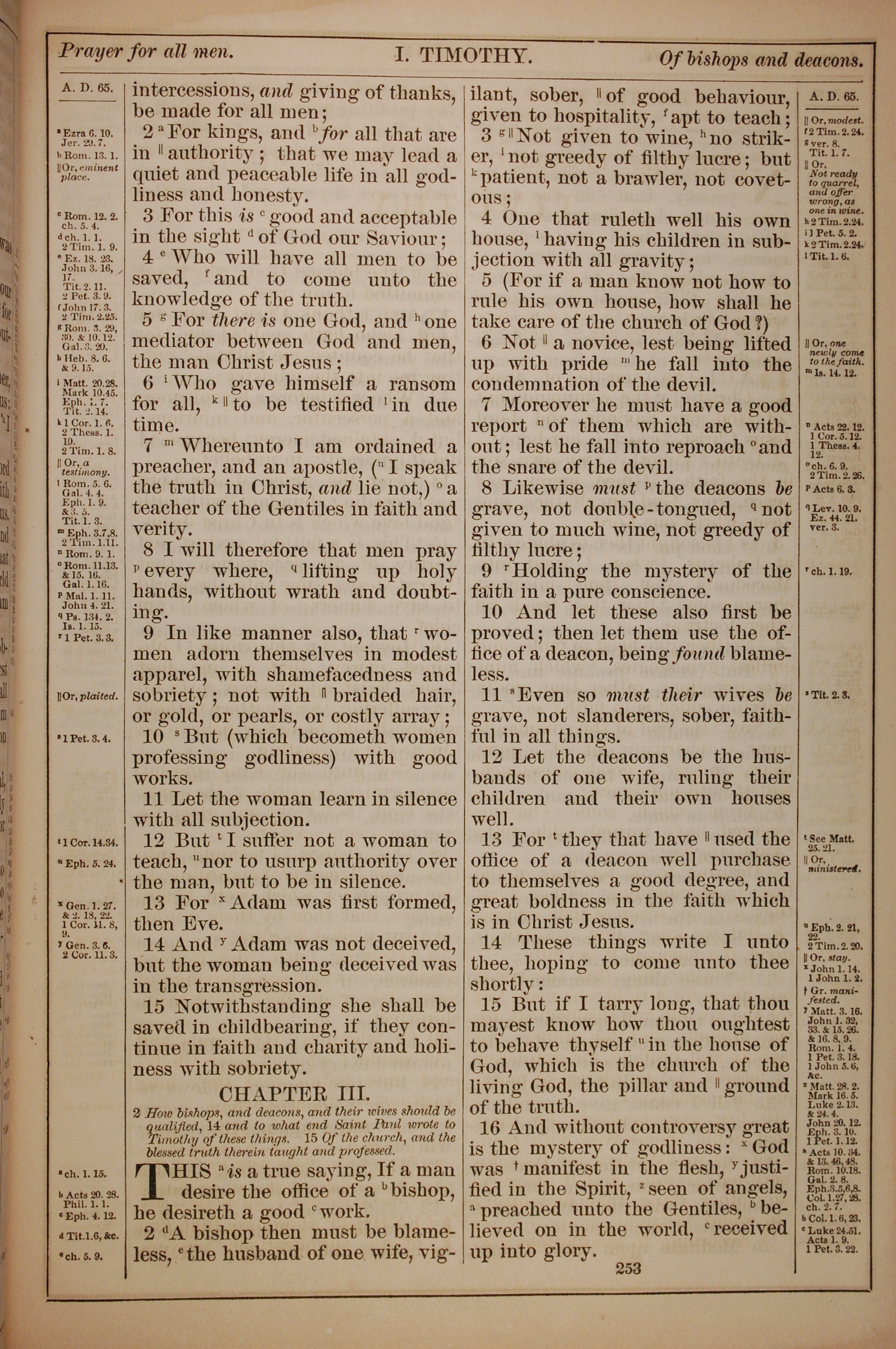 1882年Holy Bible 提摩太前书 2 章 2 节到 3 章 16 节