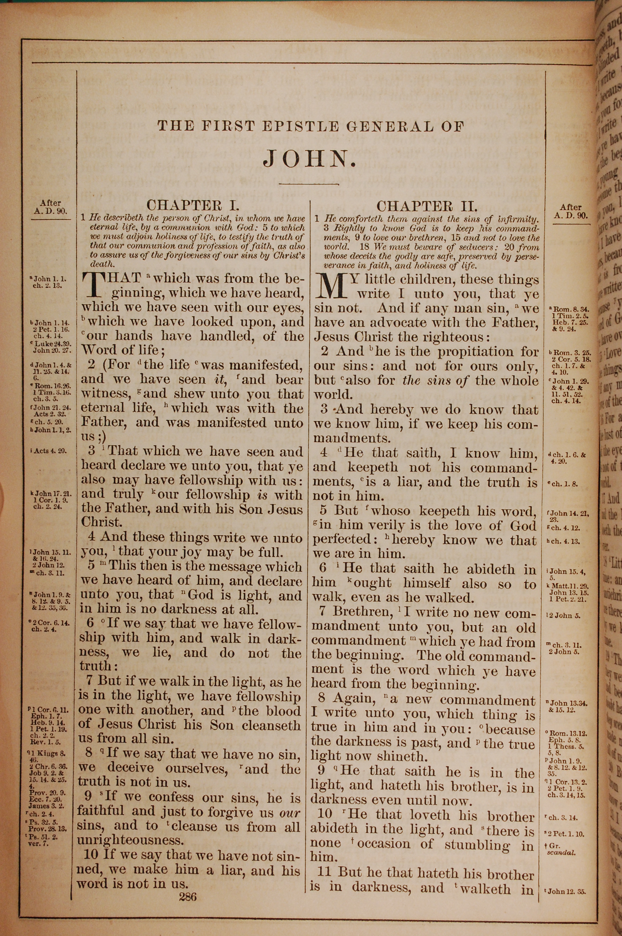 1882年Holy Bible 约翰一书 1 章 1 节到 2 章 11 节