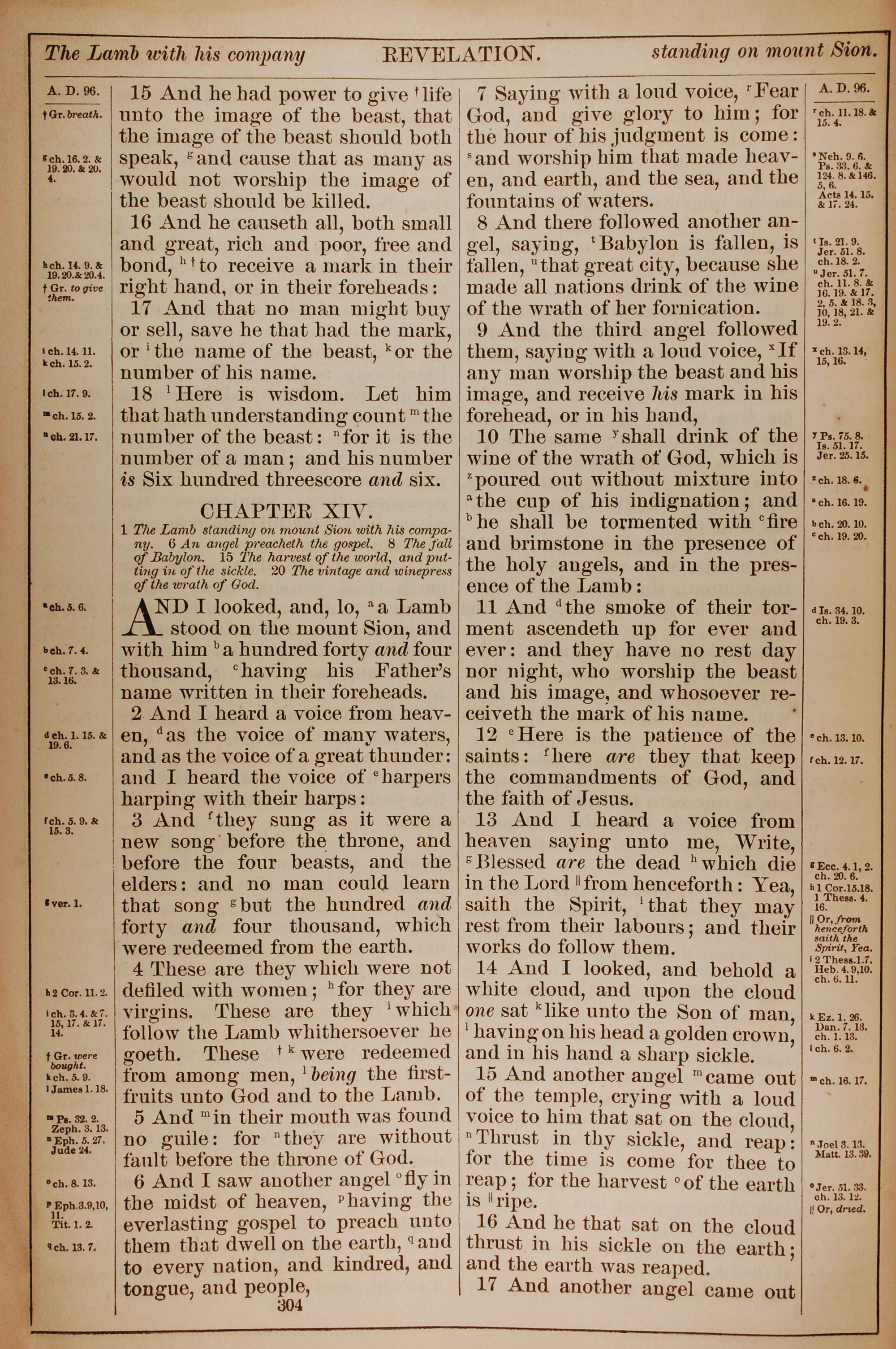 1882年Holy Bible 启示录 13 章 15 节到 14 章 17 节