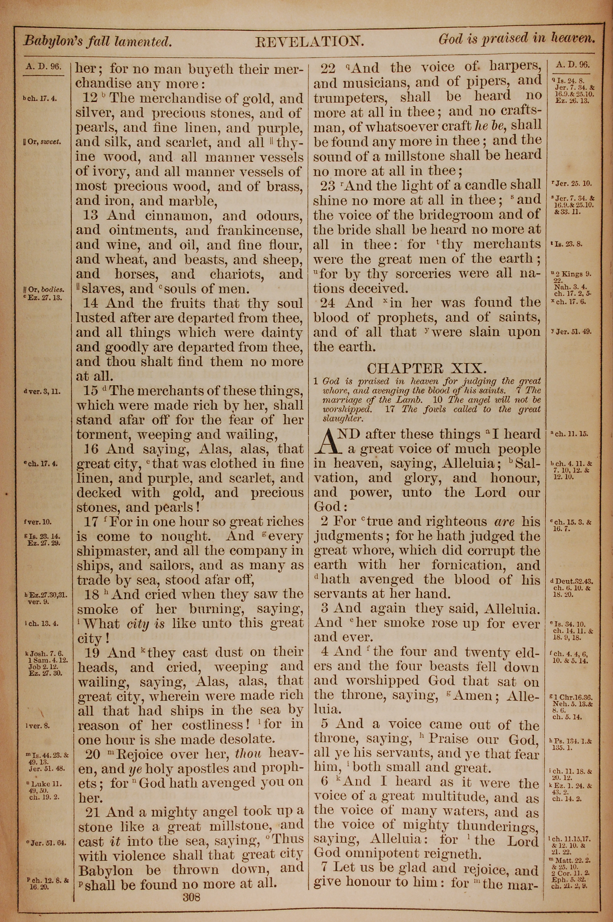 1882年Holy Bible 启示录 18 章 12 节到 19 章 7 节